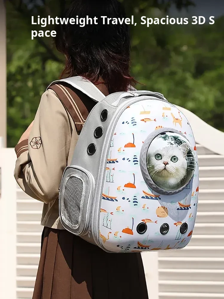 Spacious and Breathable Cat Backpack - Portable Dual-Shoulder Space Capsule Carrier for Outdoor Adventures with Your Feline Friend, Perfect for Travel and Pet Supplies!