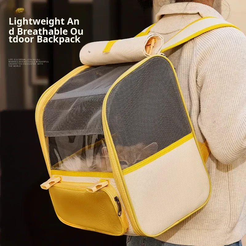 Breathable Cat Backpack - Portable and Spacious Pet Carrier with Dual Shoulder Straps, Ideal for All Seasons - Versatile Handheld Book Bag for Cats and Pet Accessories