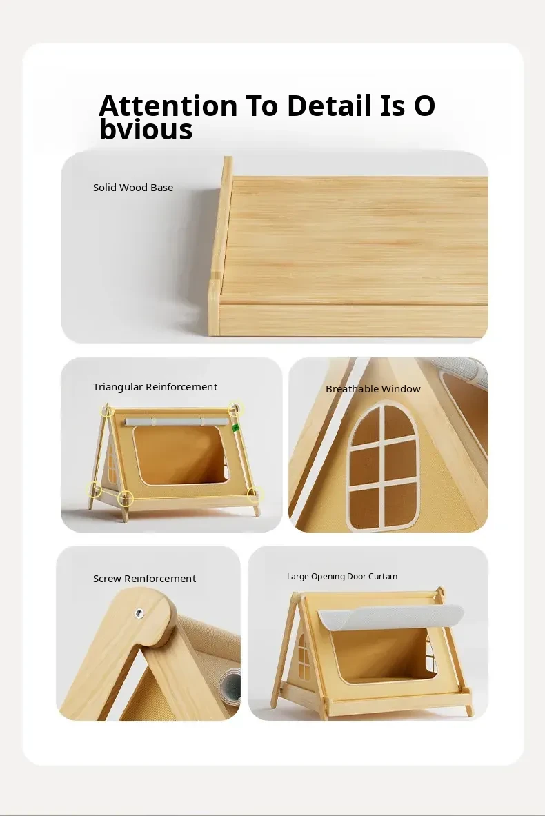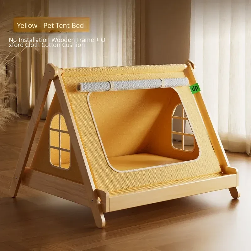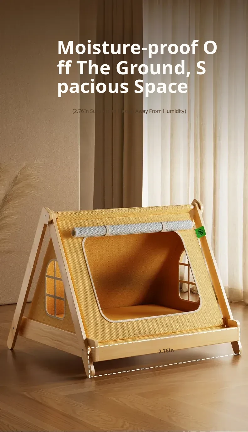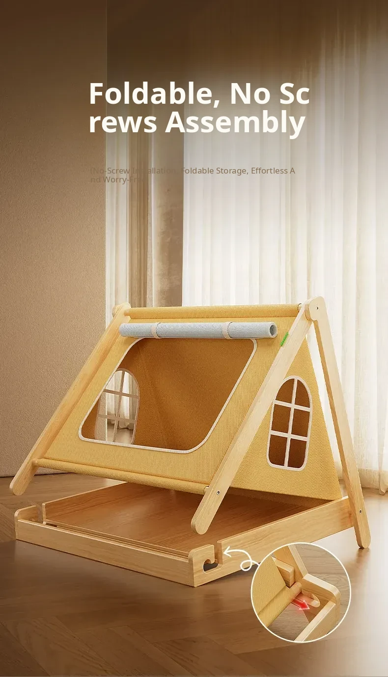 Solid Wood Cat Tent [No Assembly Required + All-Season Mat] Recoinended for Indoor Cats