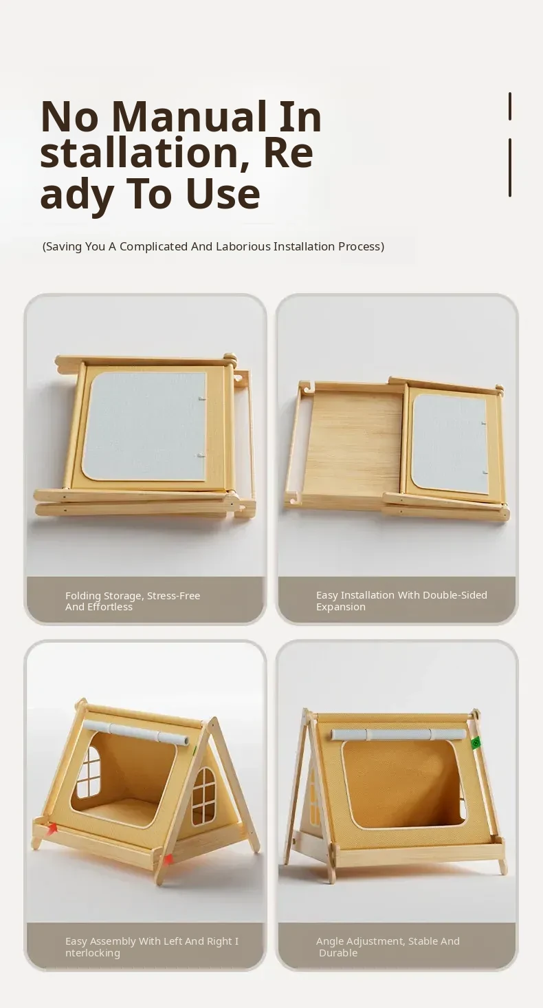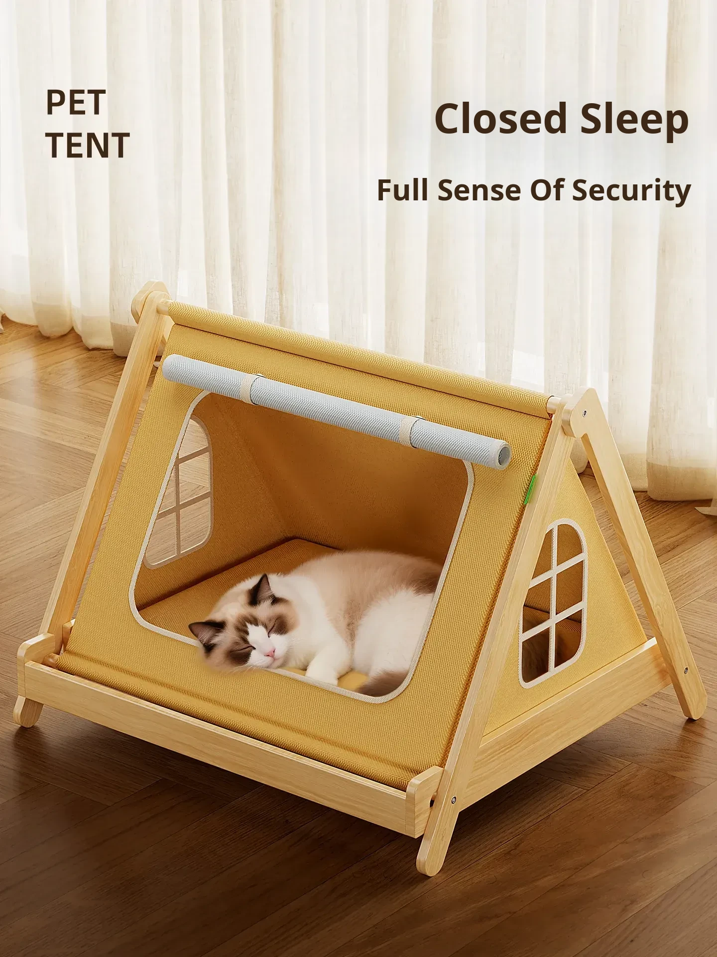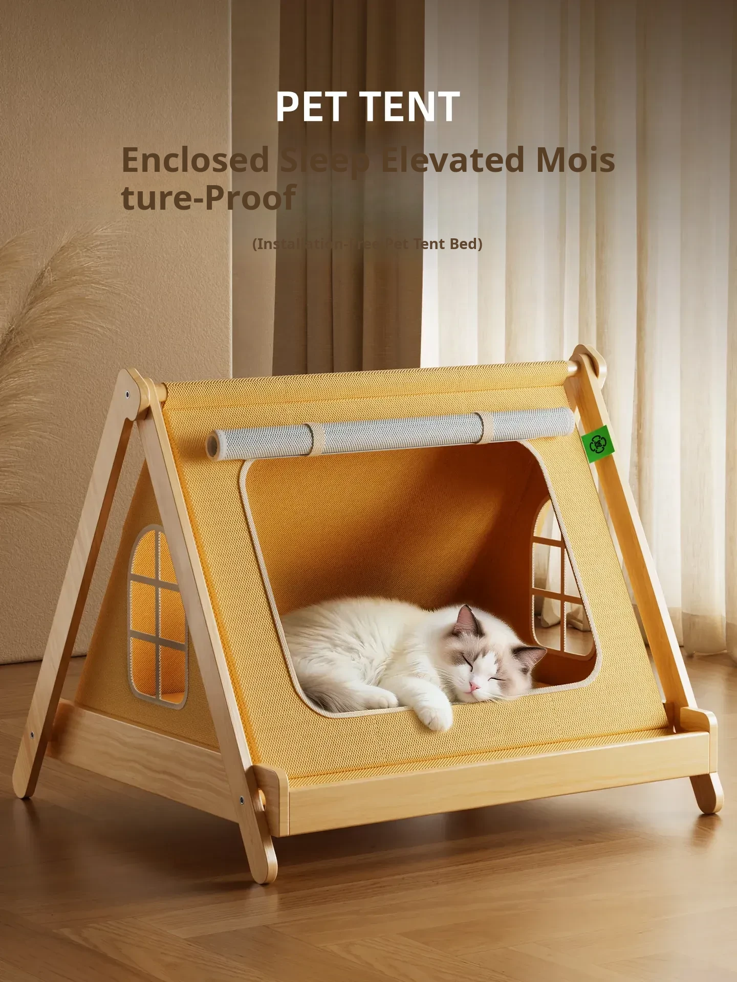 Solid Wood Cat Tent [No Assembly Required + All-Season Mat] Recoinended for Indoor Cats