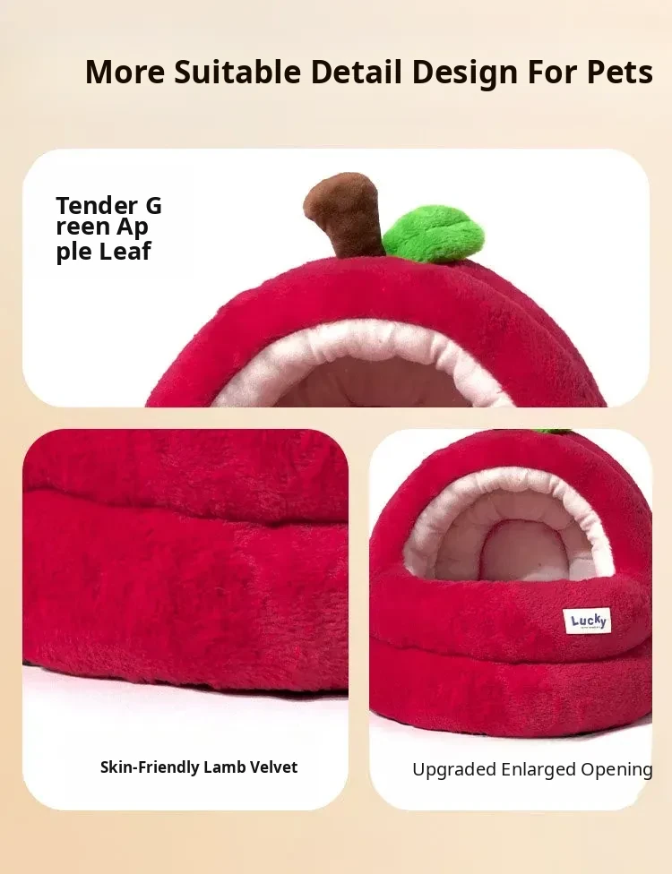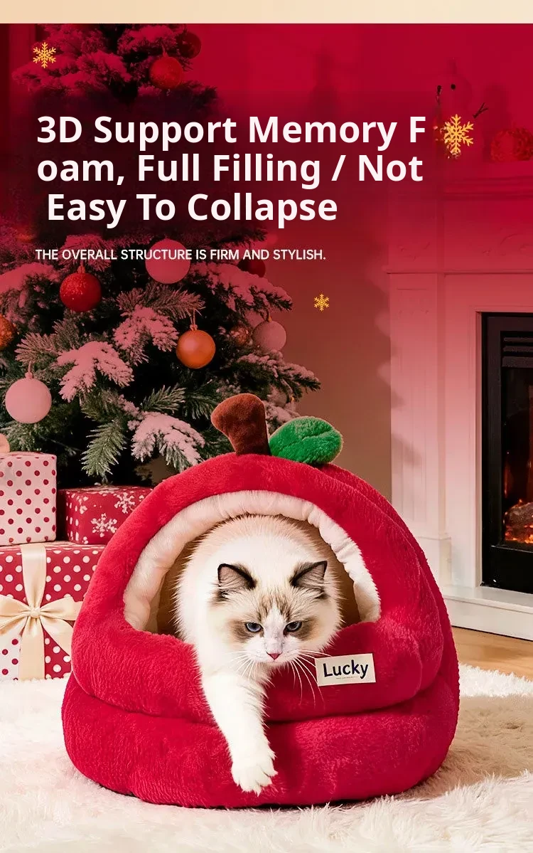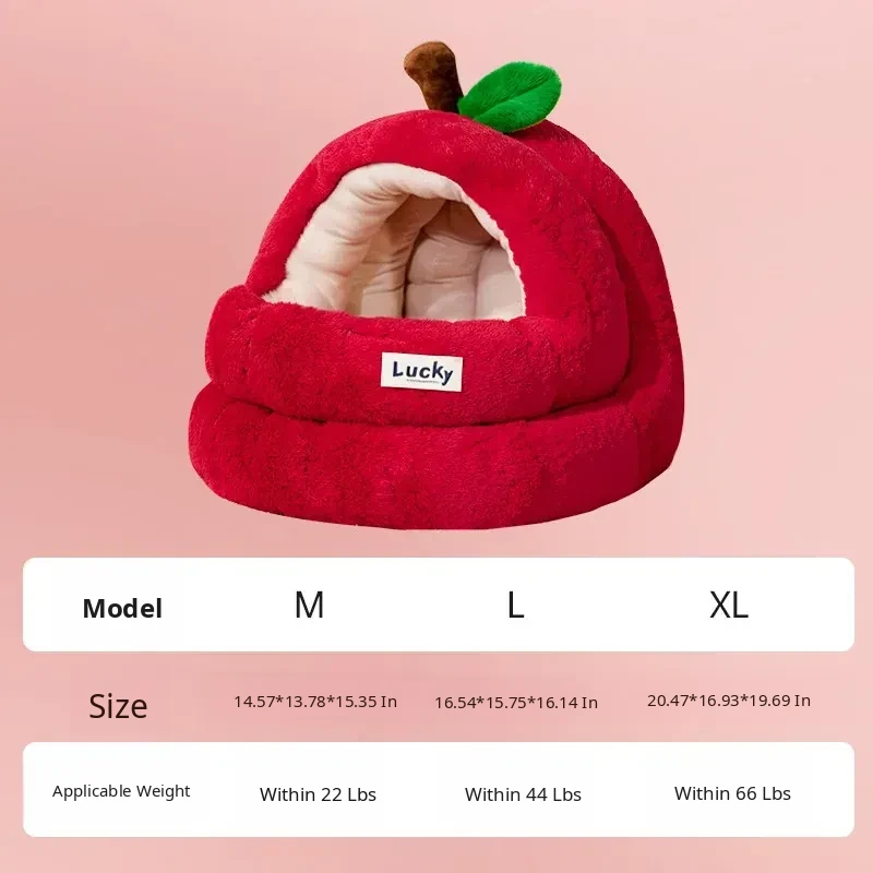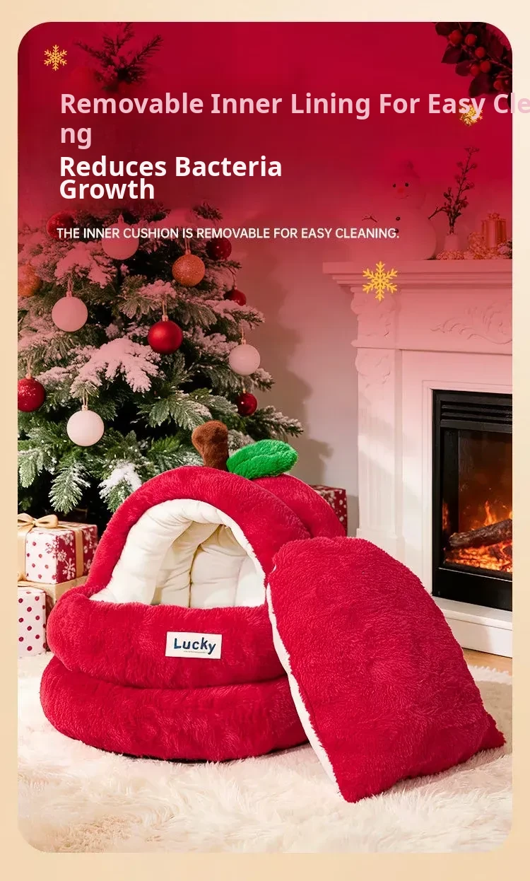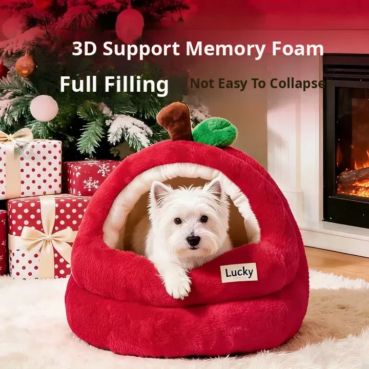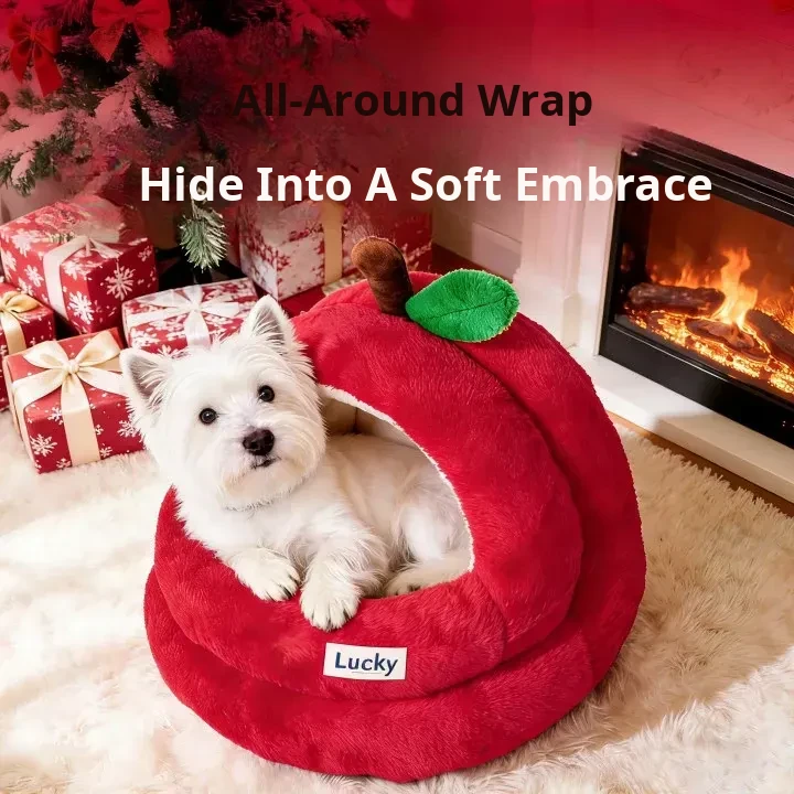 2026 New Thickened Christmas Dog Bed - Cozy Red Apple Winter Sleeping Mat, Semi-Enclosed Design for Enhanced Safety and Warmth for Your Pet