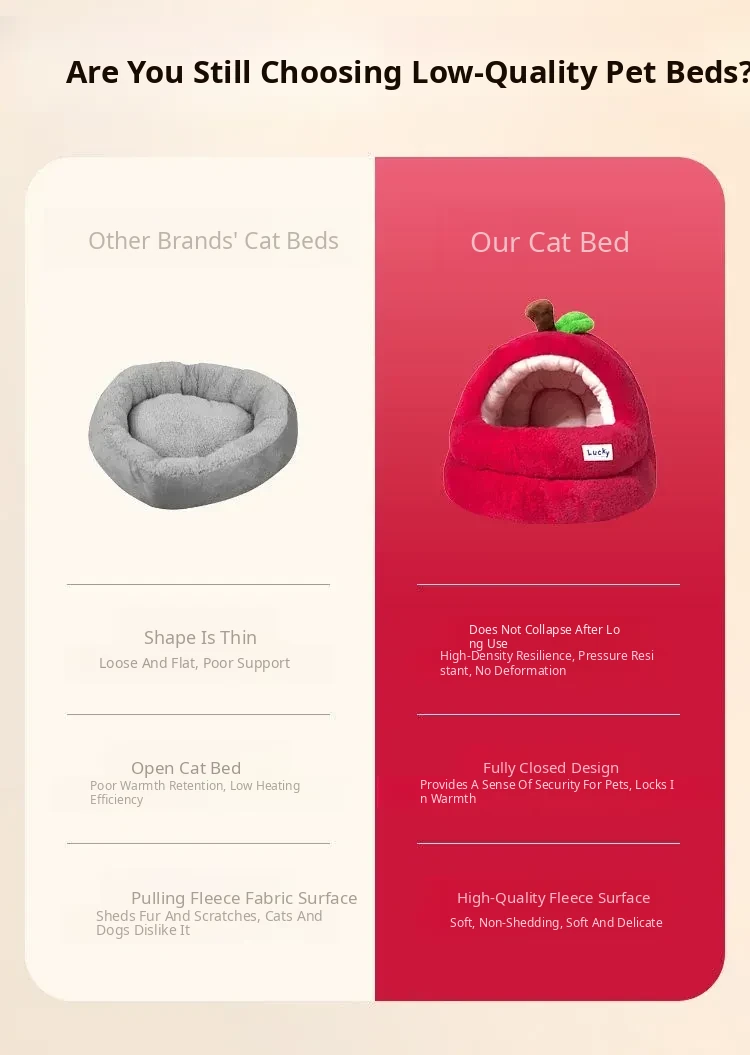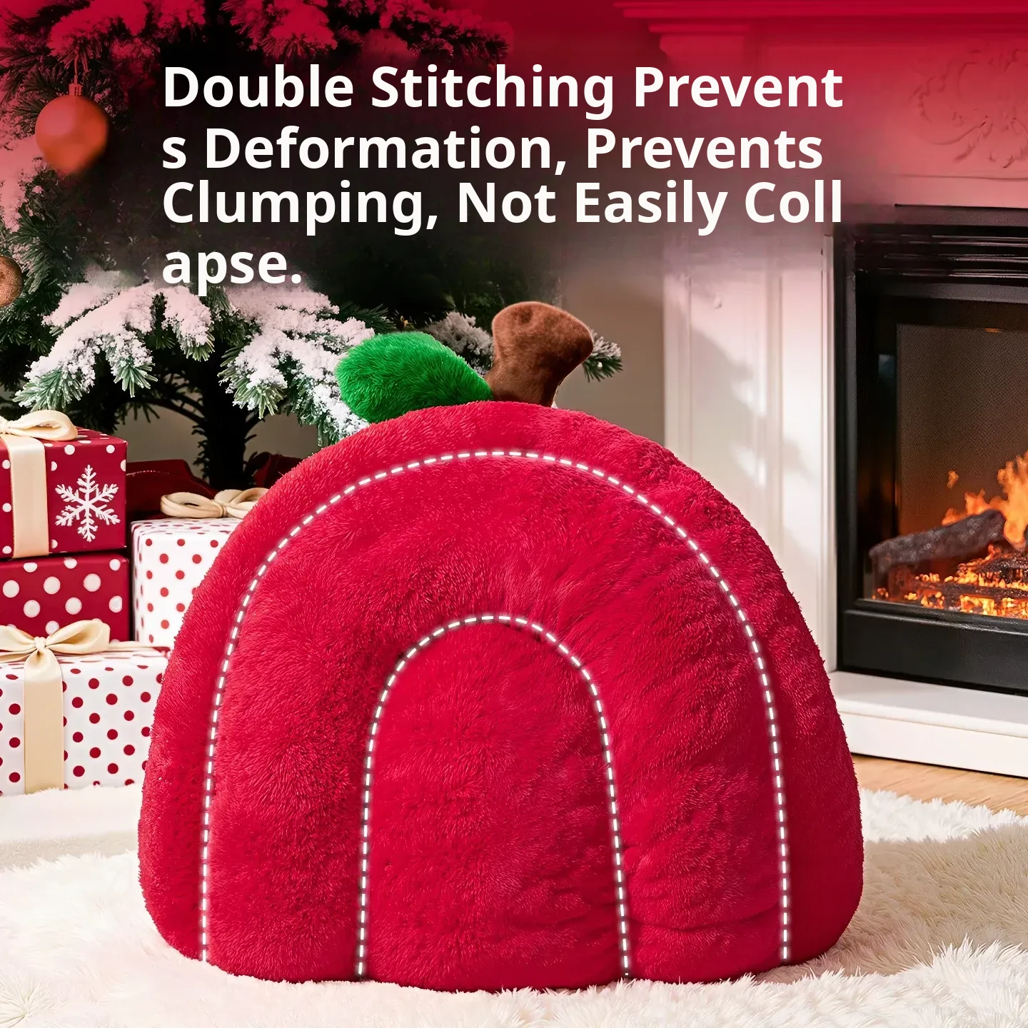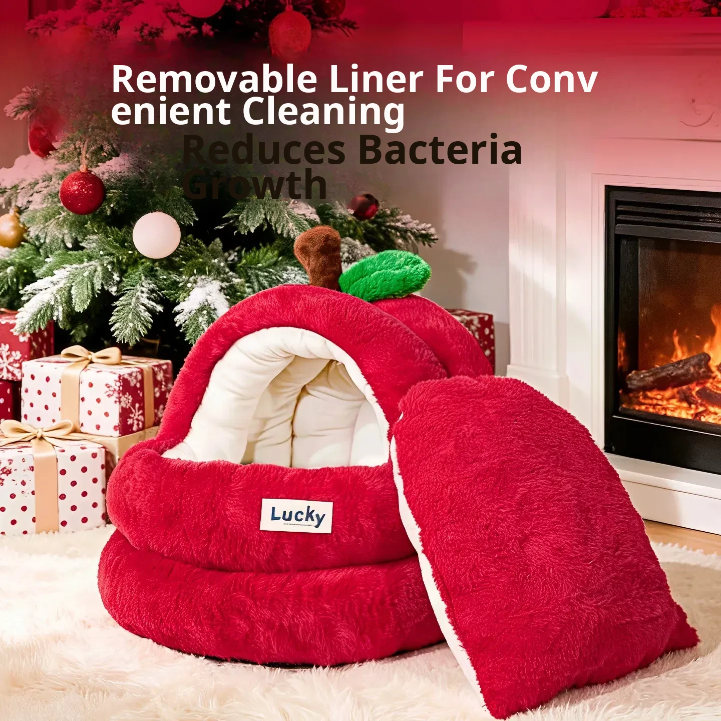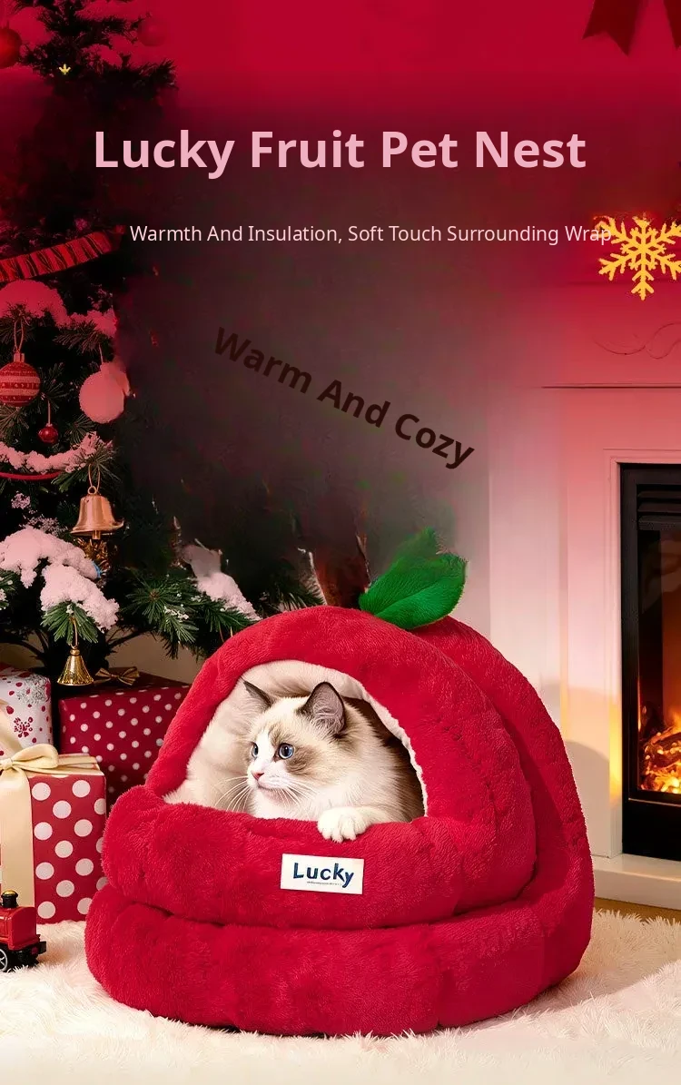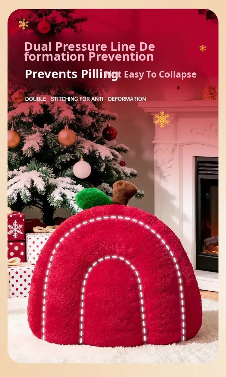 2026 New Thickened Christmas Dog Bed - Cozy Red Apple Winter Sleeping Mat, Semi-Enclosed Design for Enhanced Safety and Warmth for Your Pet