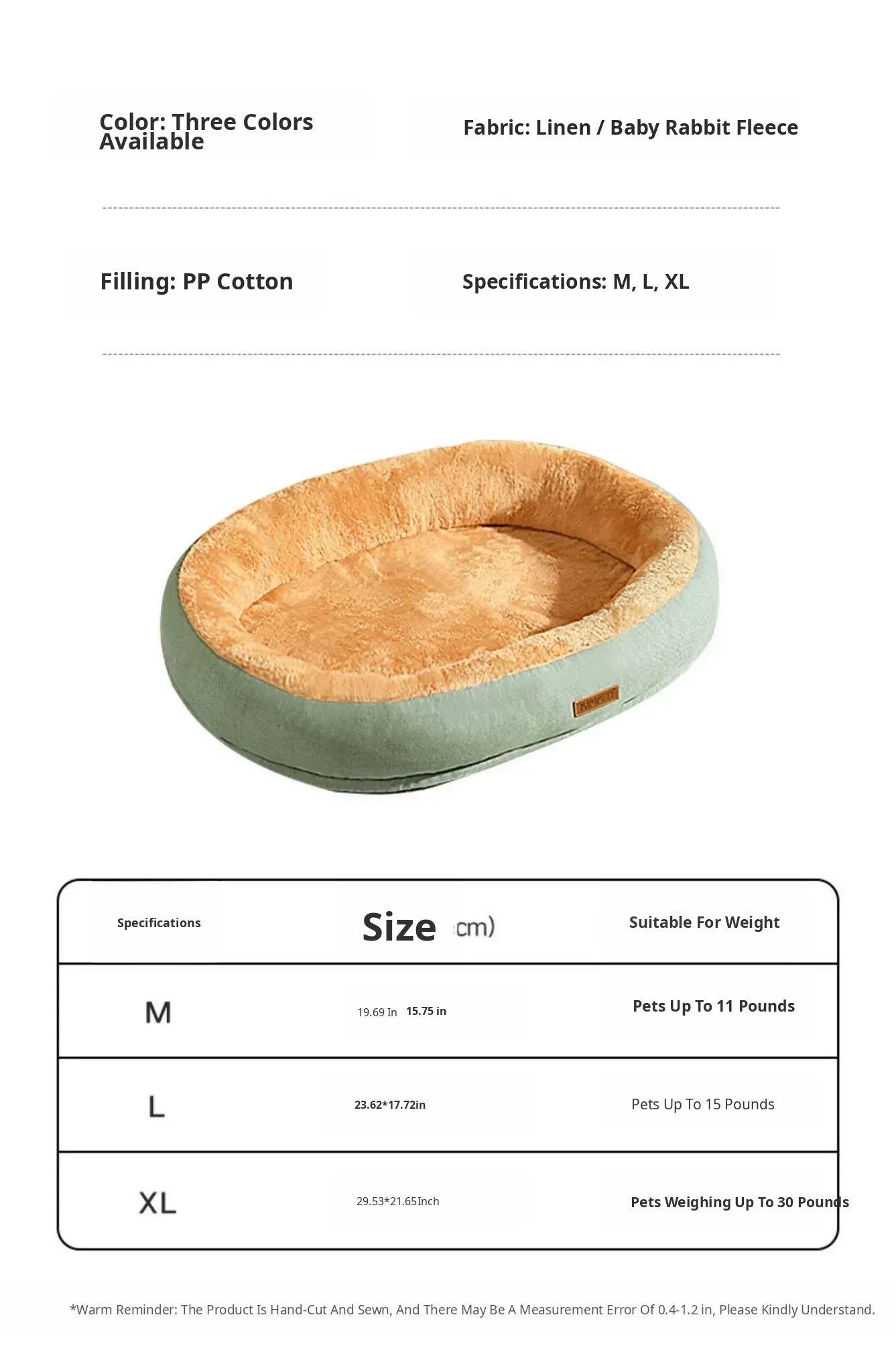 M (Size 19.69in*15.75in Recoinended for Pets under 5kg