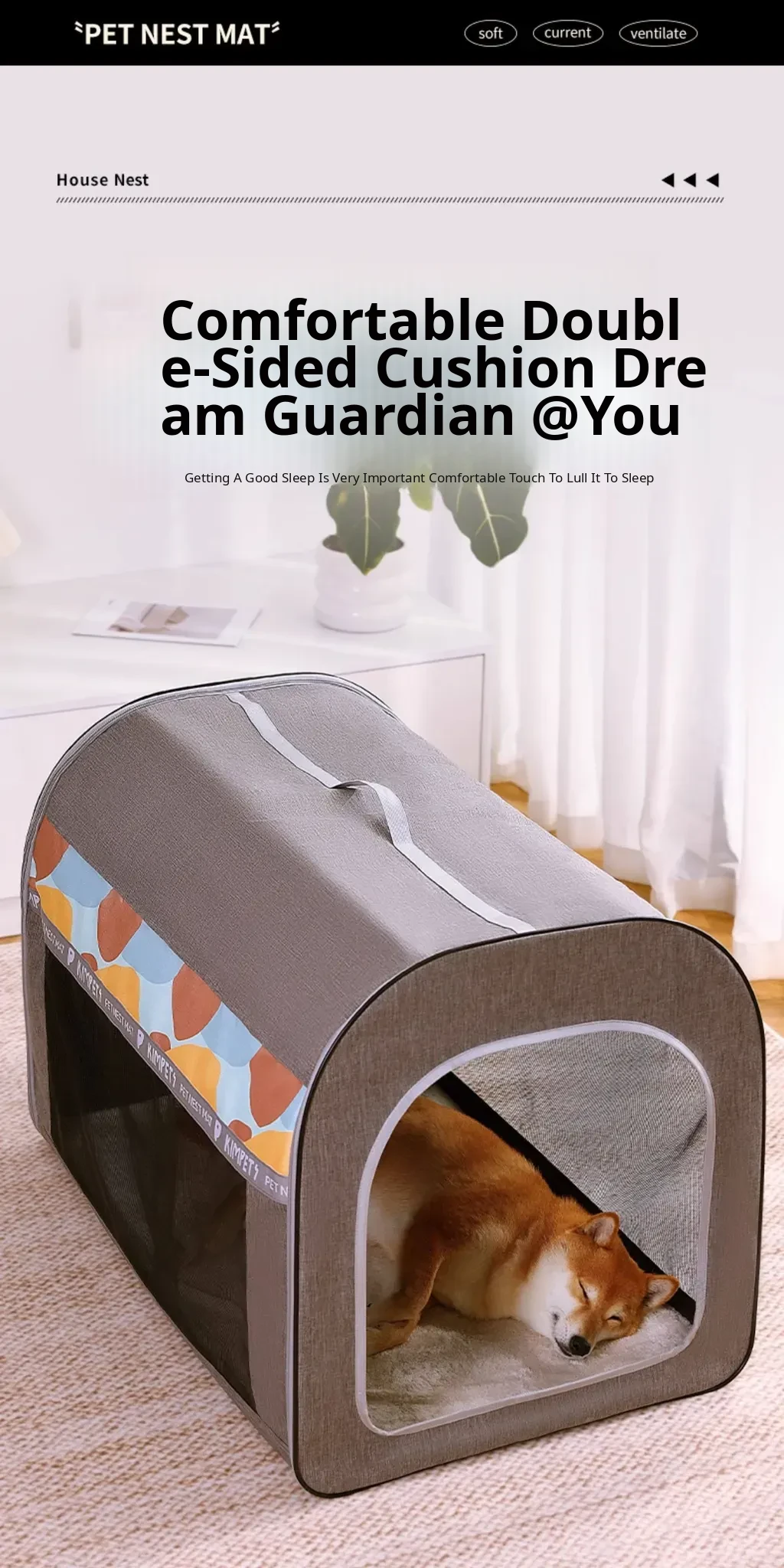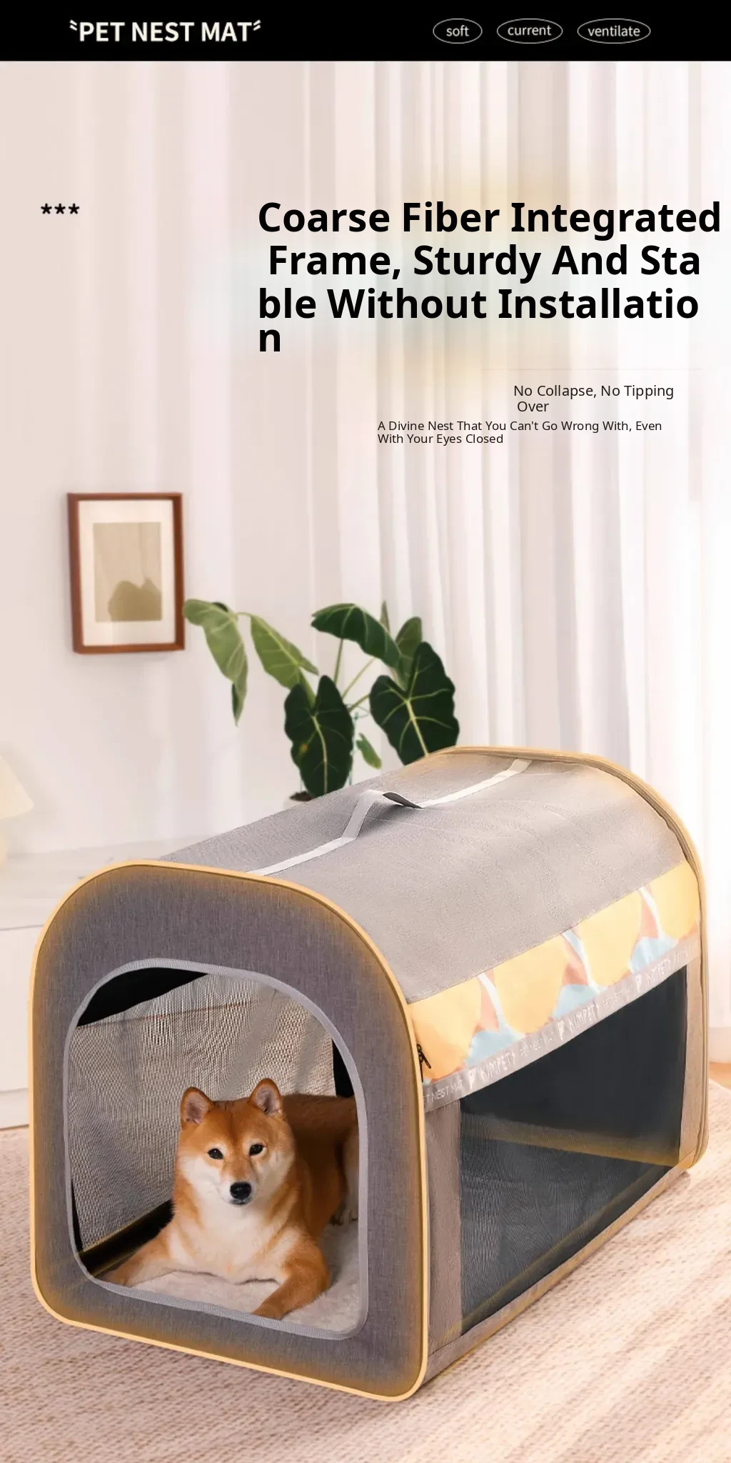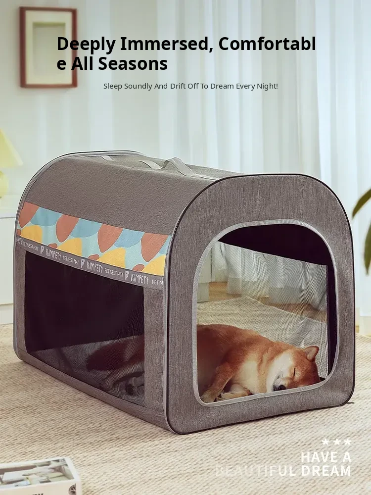 All-Season Washable Folding Dog Bed for Medium to Large Breeds - Cozy Pet House for Golden Retrievers and Cats to Sleep Comfortably