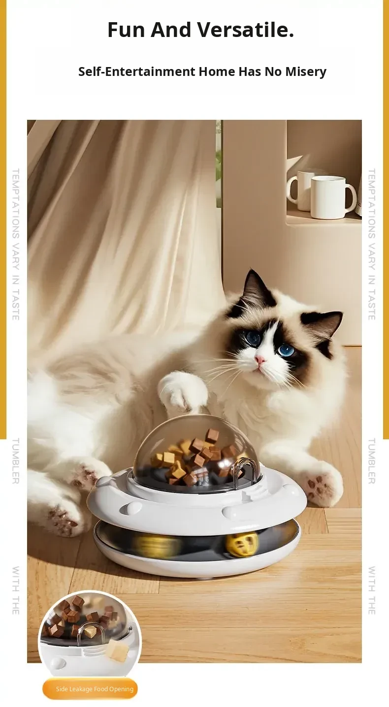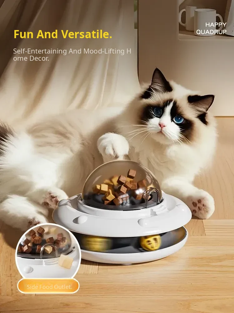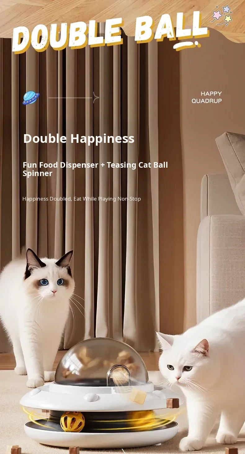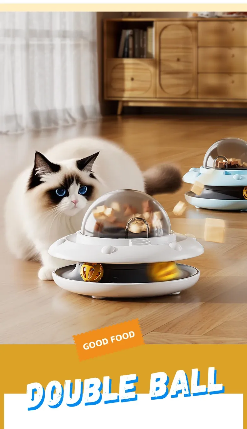 Automatic Cat Toy Ball - Self-Entertainment Device for Cats, Interactive Teaser Wand, Treat Dispensing Spinner, Ideal for Kittens and Cats, Freeze-Dried Treat Launcher for Endless Fun!
