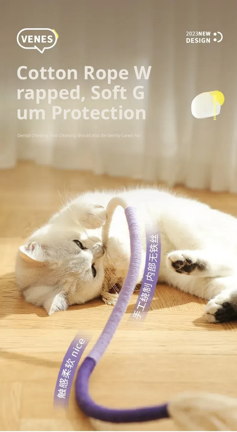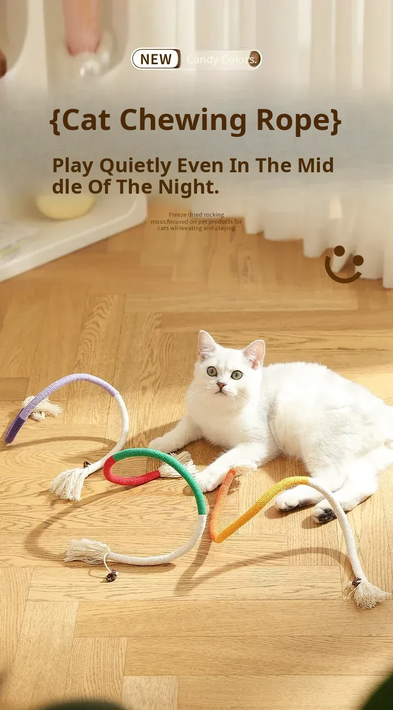 Cat Chew Rope Toy for Playful Kittens - Fun Dental Chew String with Wormwood Flavor, Perfect for Teething and Entertainment for Your Feline Friends!