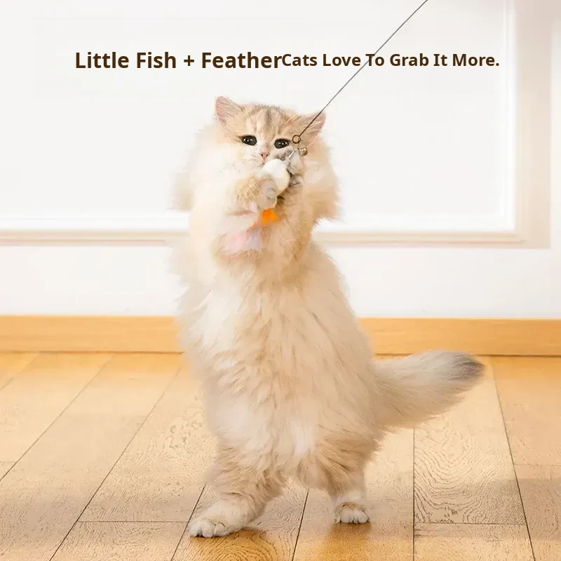 Kitten Fishing Cat Teasing Stick + 3 Replacement Heads [Replace at Any Time]