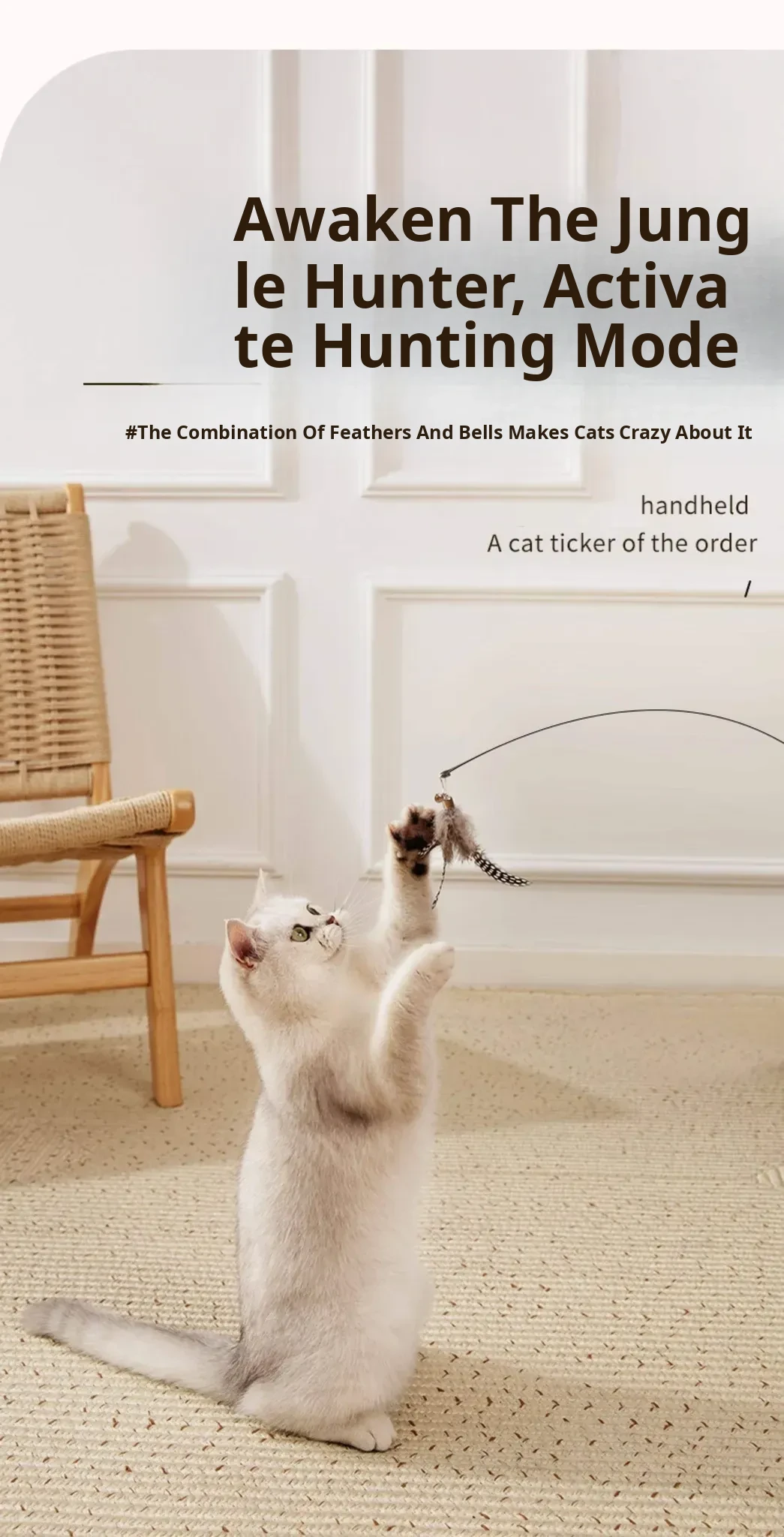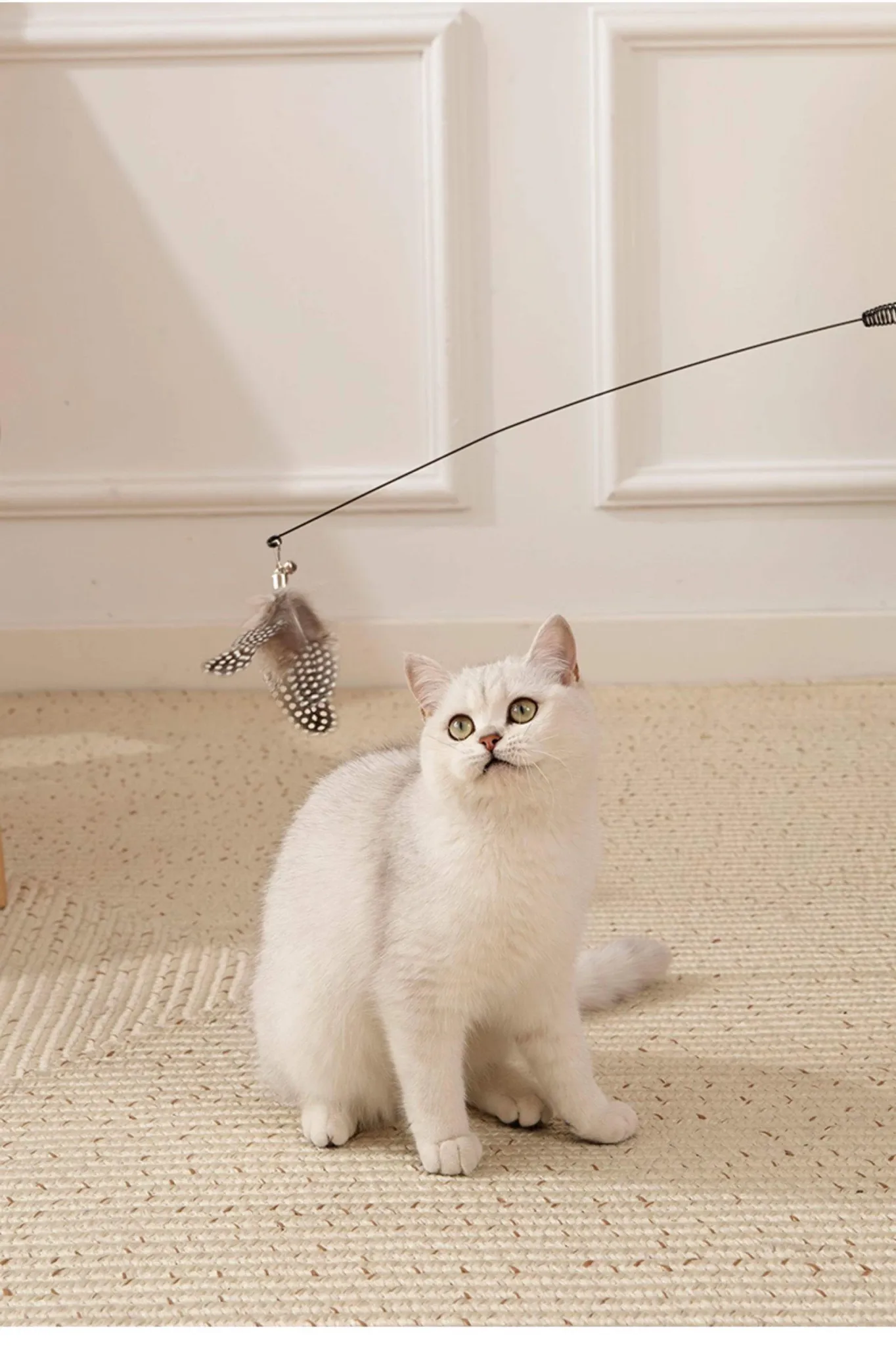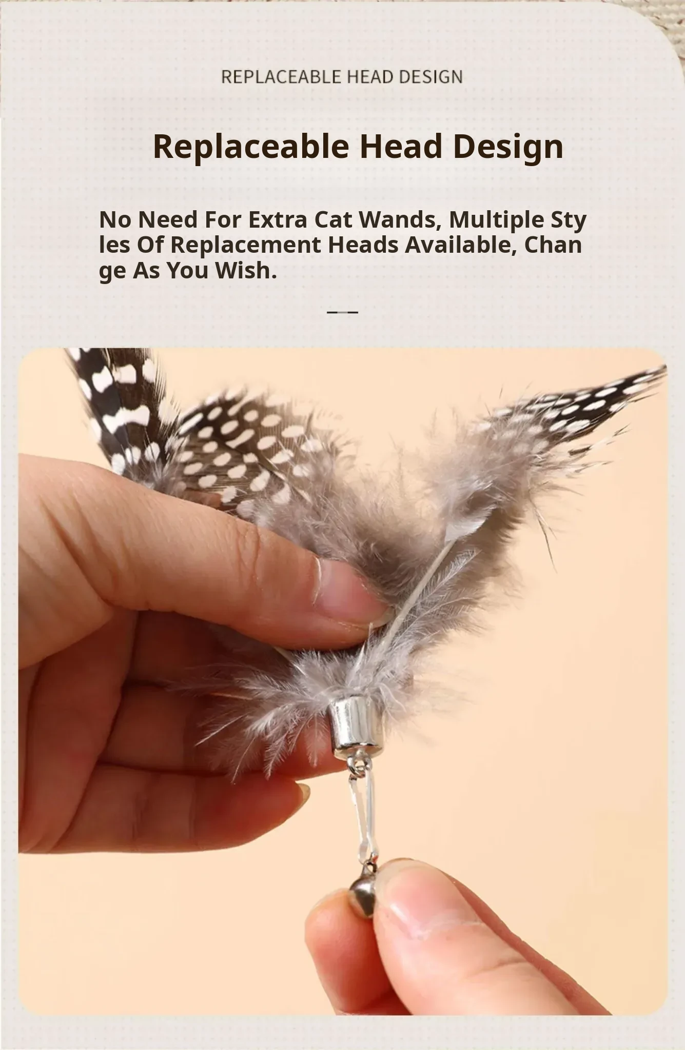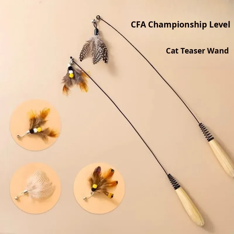 CFA Competition-Grade Cat Teaser Wand with Interchangeable Feather and Bug Heads - Durable and Fun Cat Toy for Kittens to Keep Them Entertained and Engaged