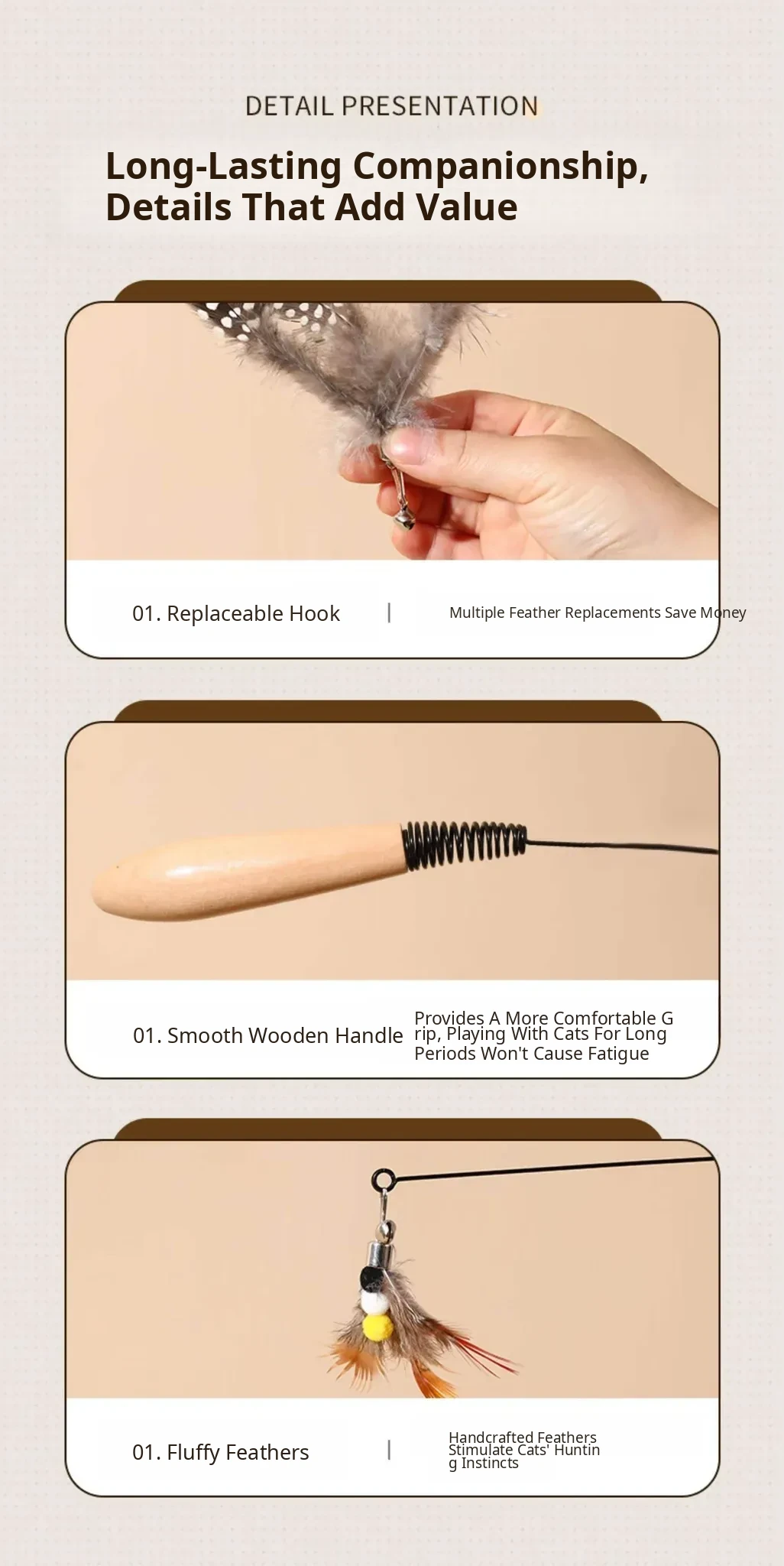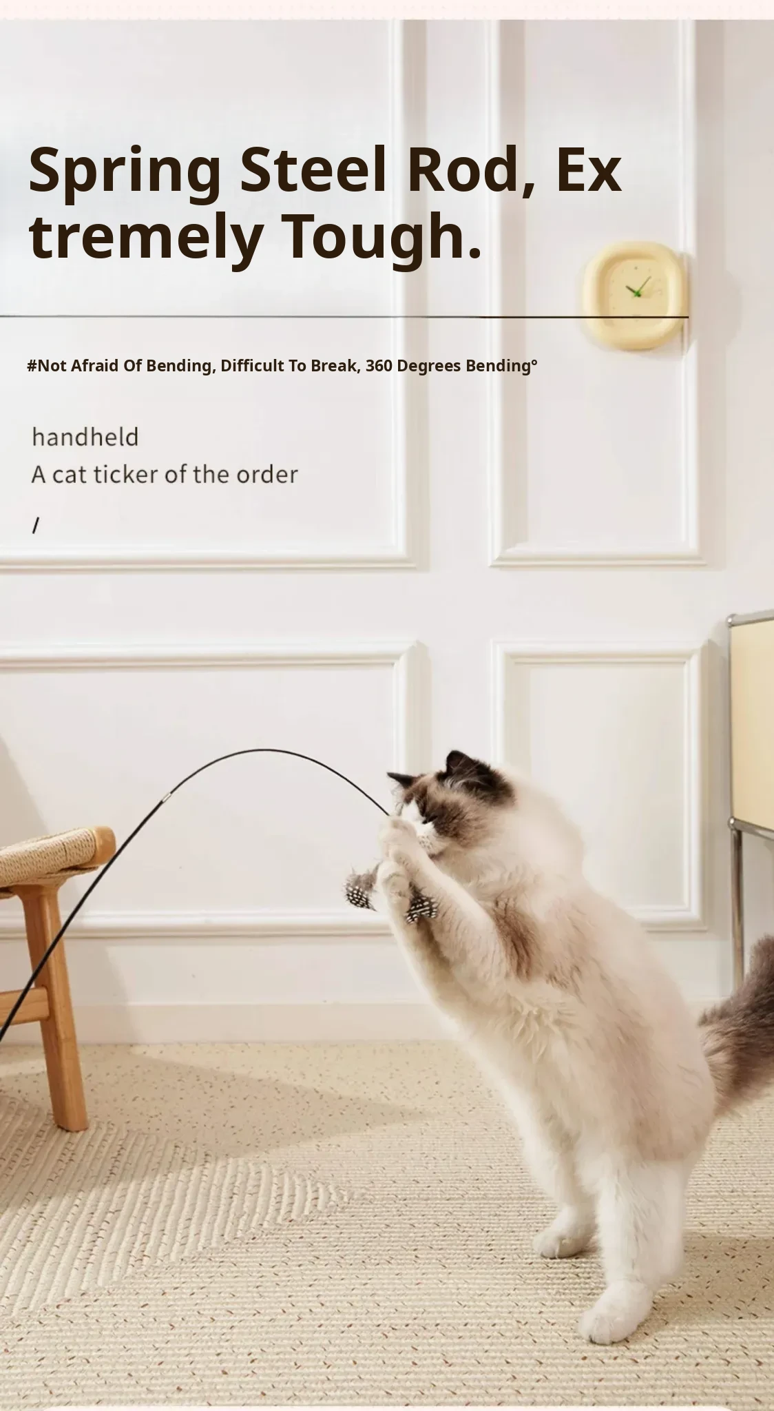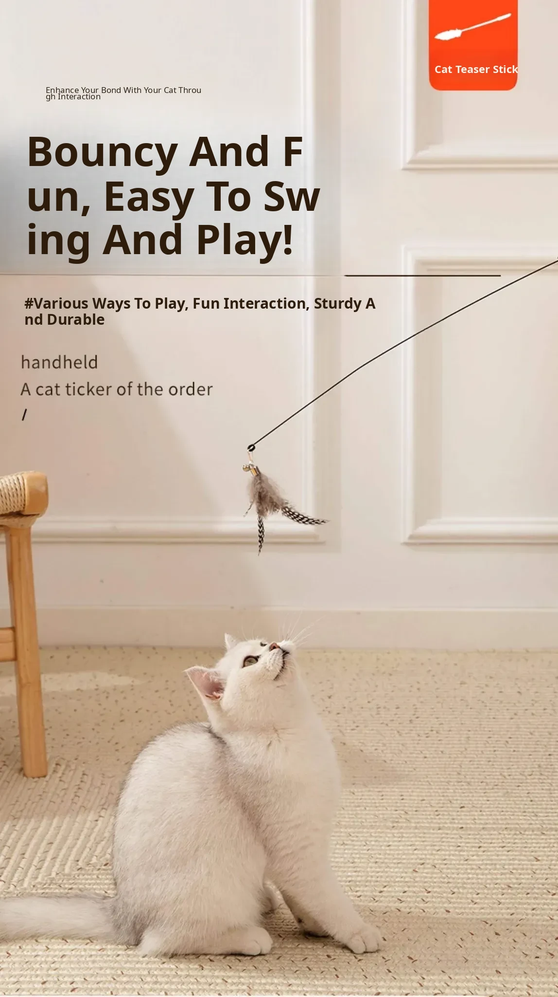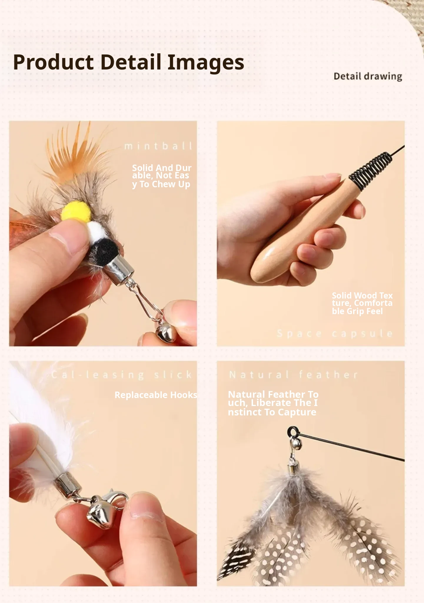 CFA Competition-Grade Cat Teaser Wand with Interchangeable Feather and Bug Heads - Durable and Fun Cat Toy for Kittens to Keep Them Entertained and Engaged