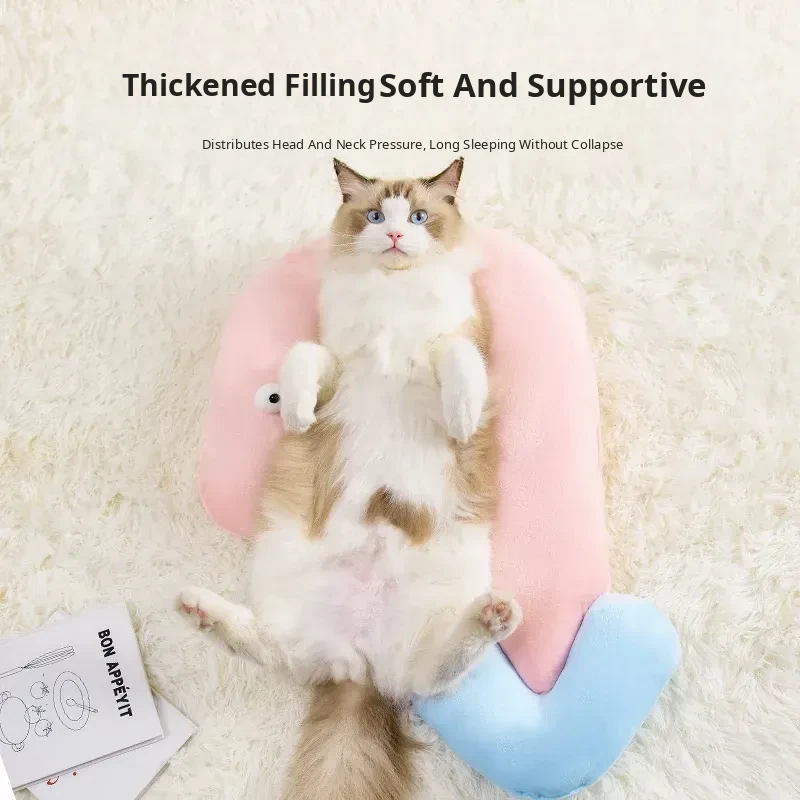 Cozy All-Season Cat Pillow - Perfect for Pets to Sleep, Neck Support for Dogs in Winter, Ideal Companion for Cuddling and Comfort