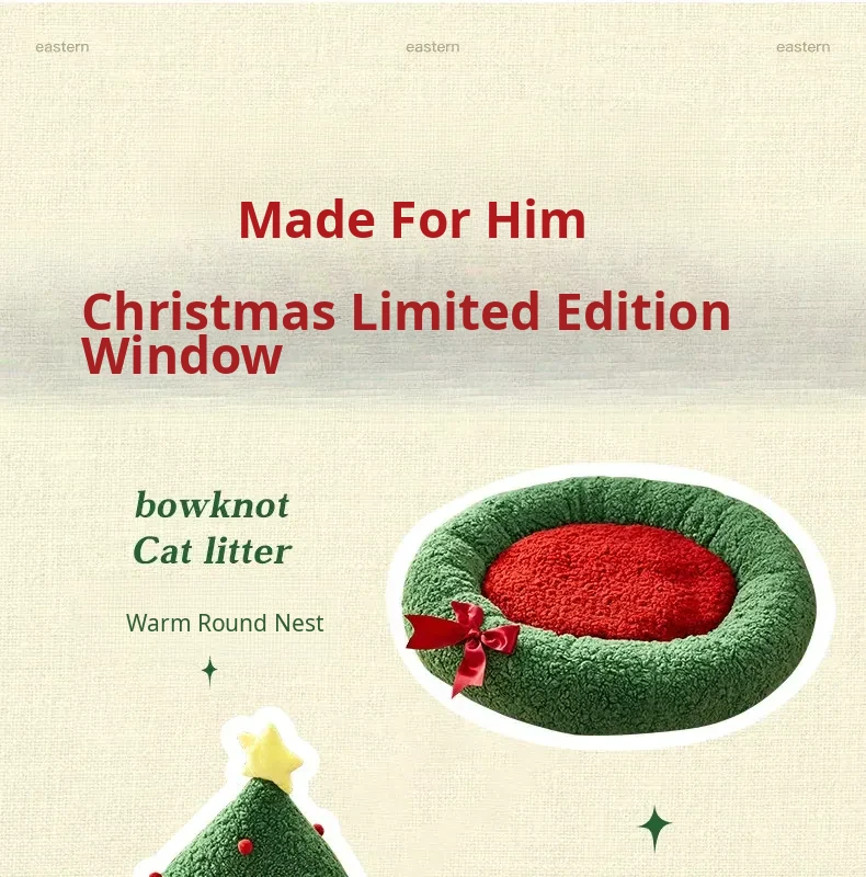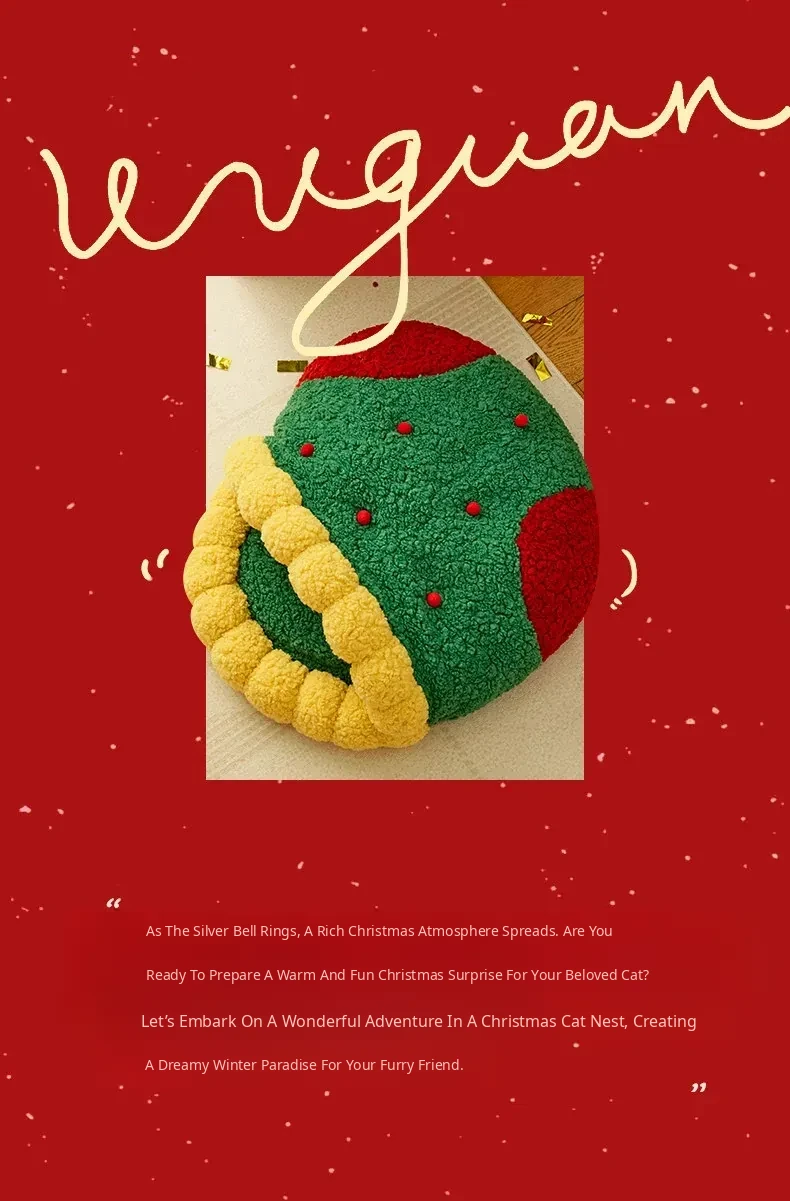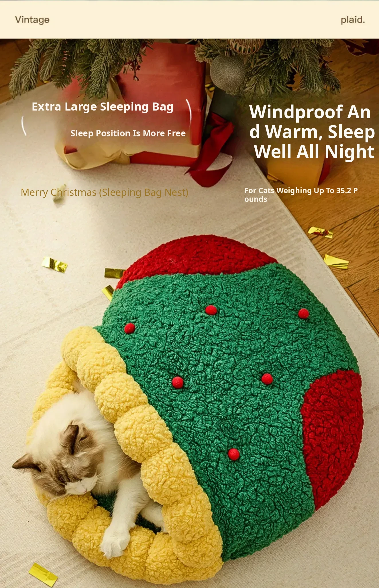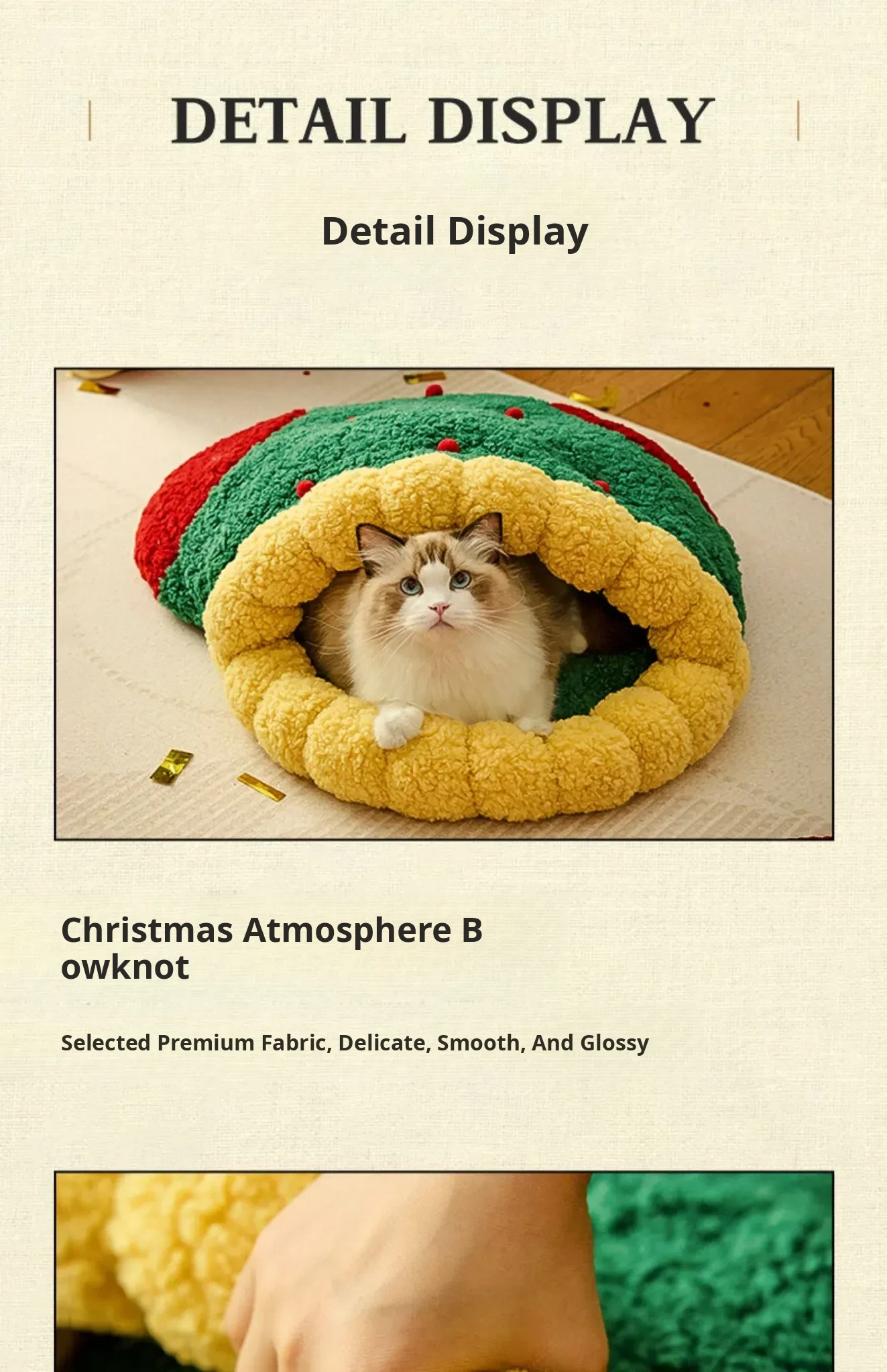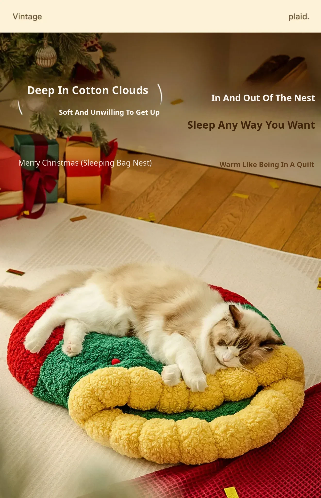 Cozy Winter Cat Bed - Semi-Enclosed Christmas Edition with Tunnel for Deep Sleep, Perfect for Cats and Small Dogs, Ideal for Snuggling and Warmth