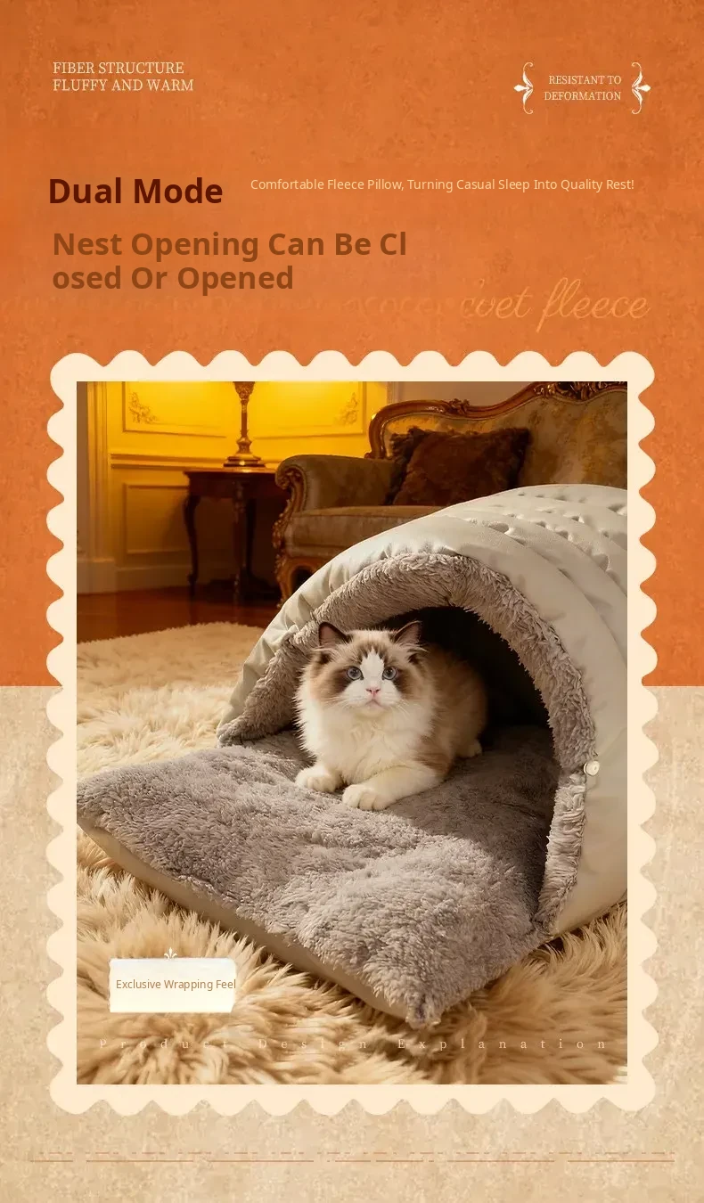 Cozy Winter Cat Bed - Thickened Cat Sleeping Bag for All Seasons, Ideal for Kittens and Cats, Soft Cat Mat and House for Ultimate Comfort