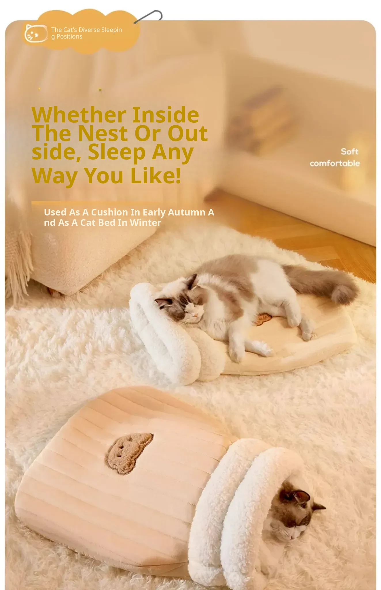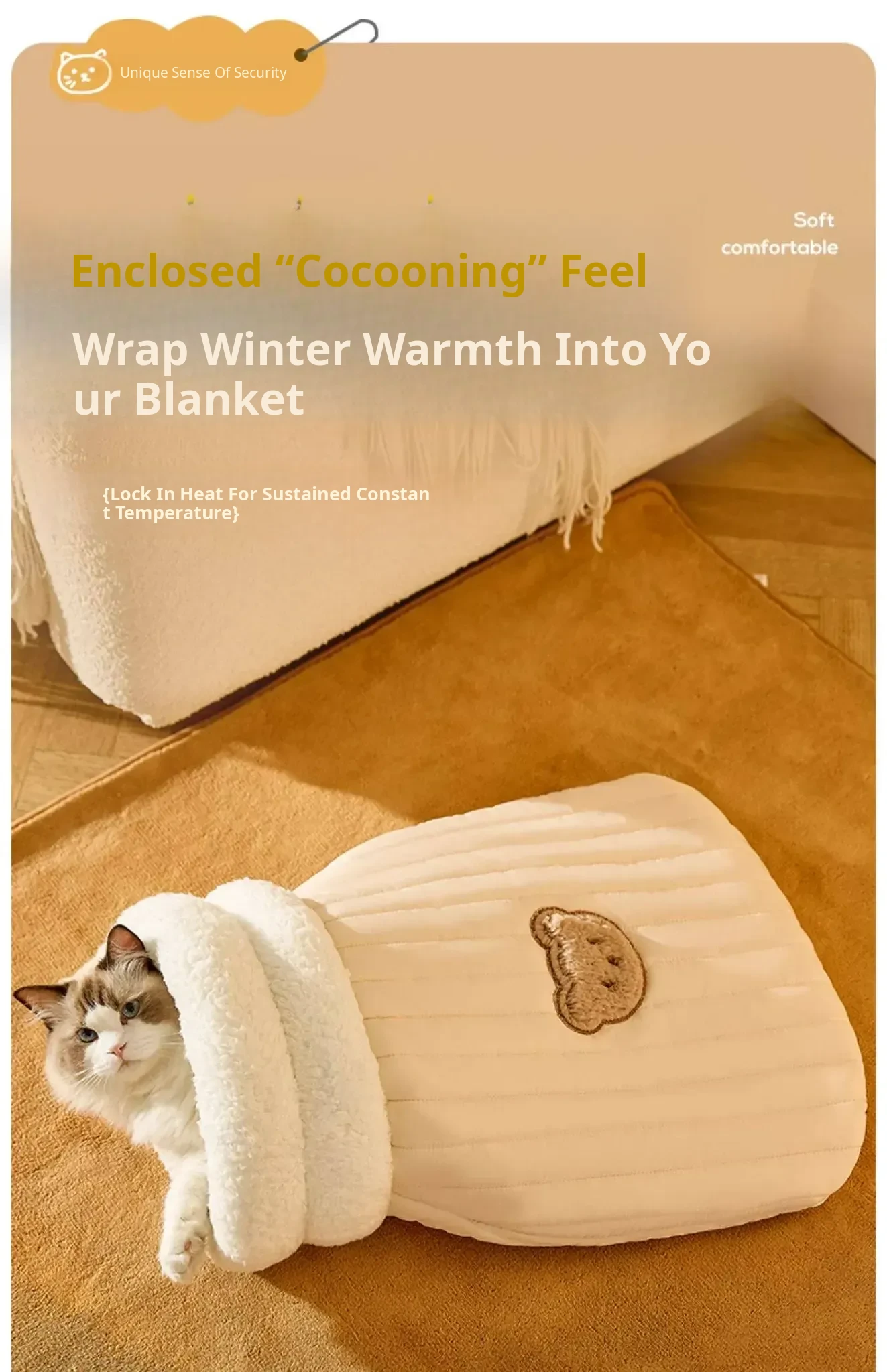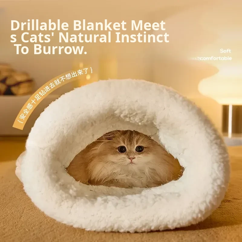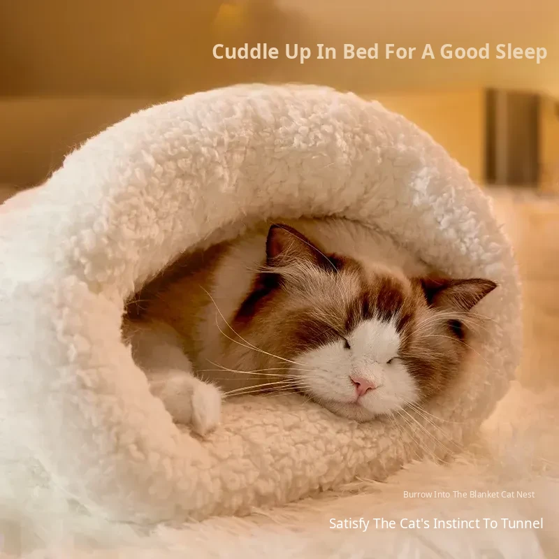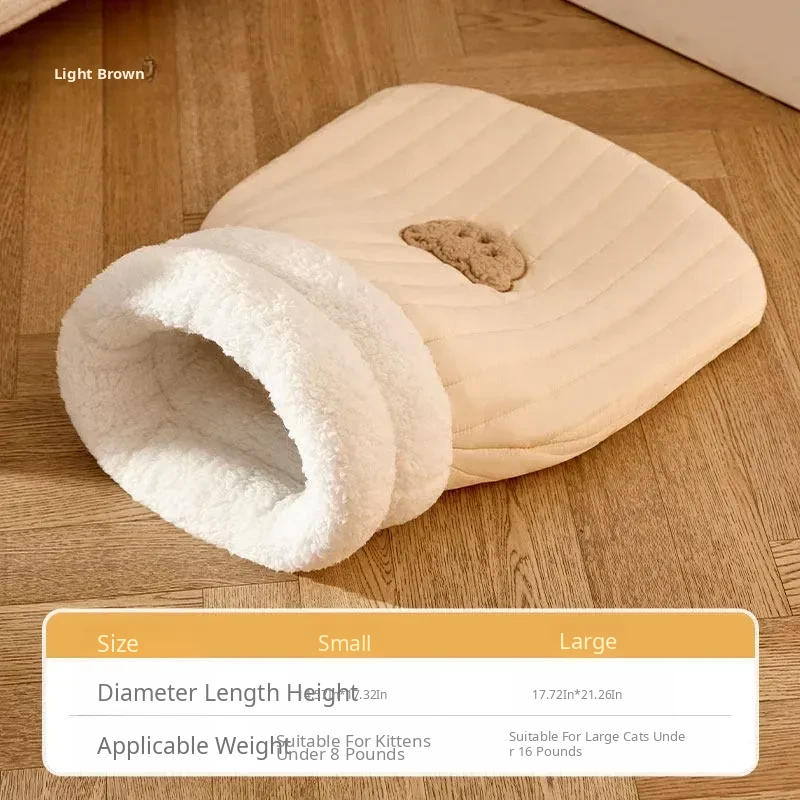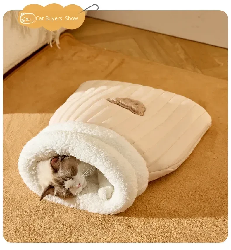 Cozy Winter Cat Bed - Warm and Secure Sleeping Bag for Cats, All-Season Enclosed Cushion for Kittens to Snuggle and Sleep Comfortably
