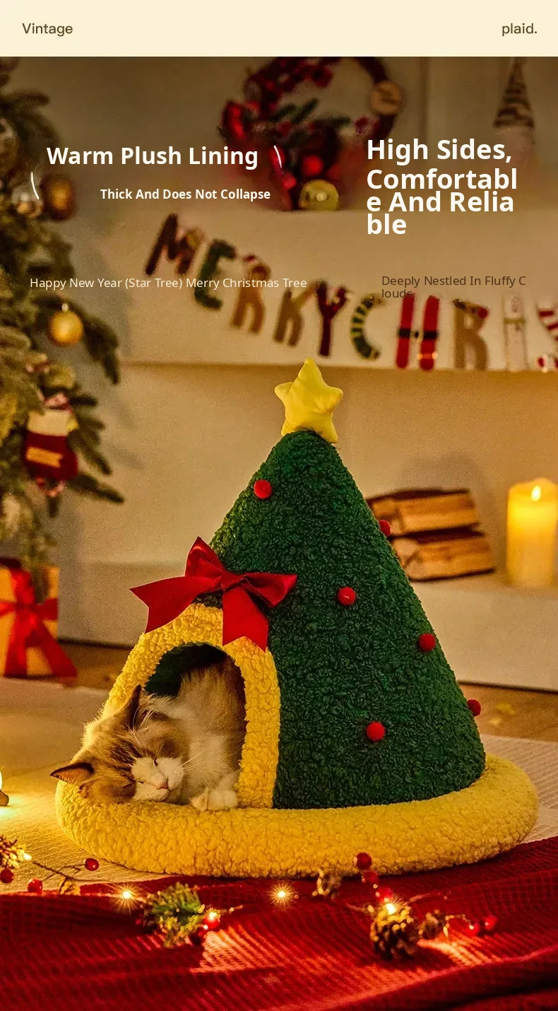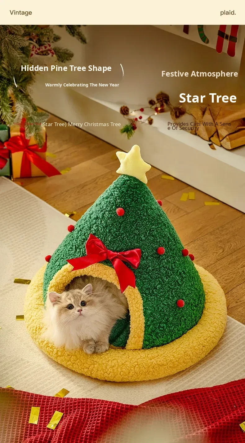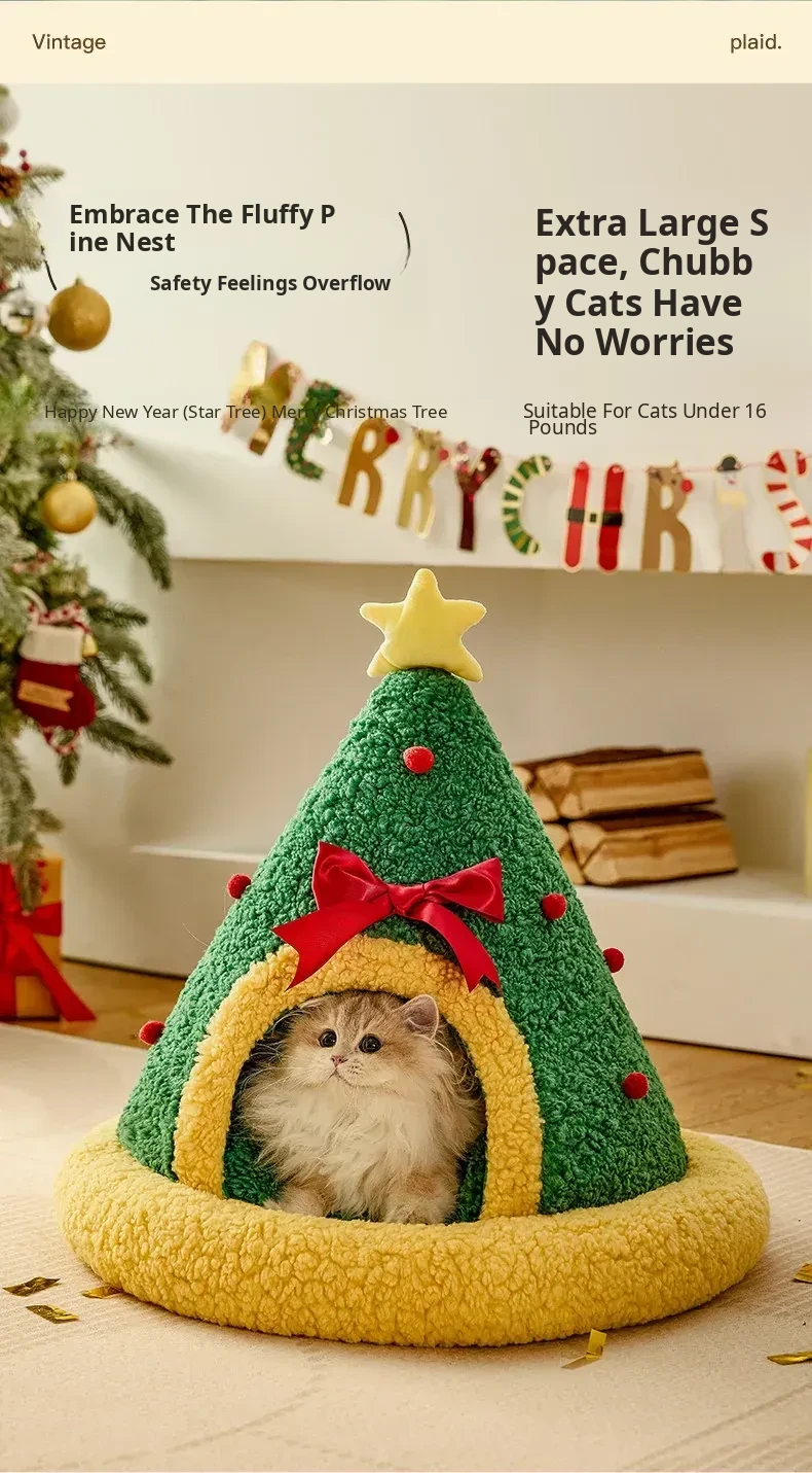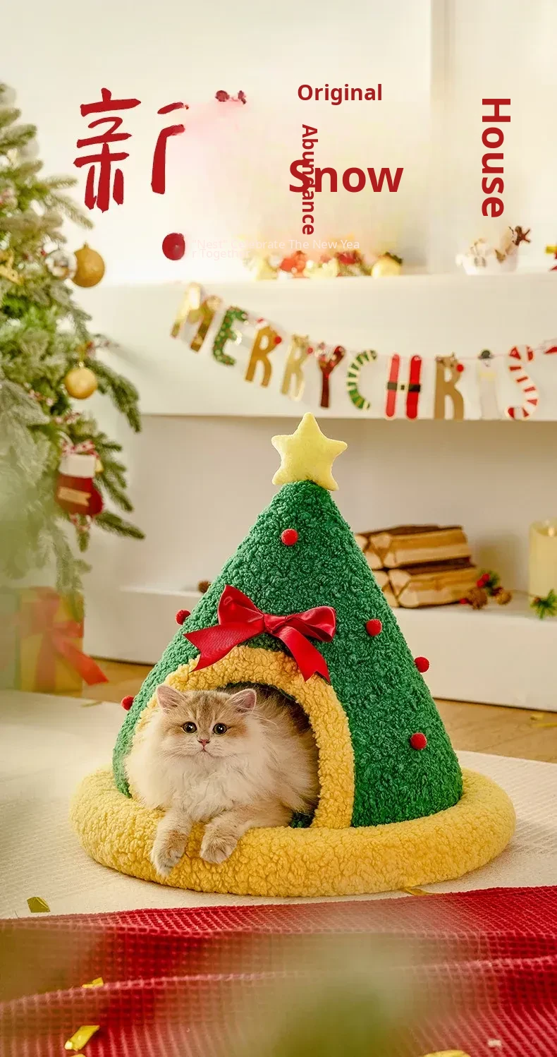 Cozy Winter Cat House - Insulated, Plush, and Thickened Tent for All Seasons - Perfect Enclosed Space for Your Feline Friend This New Year!