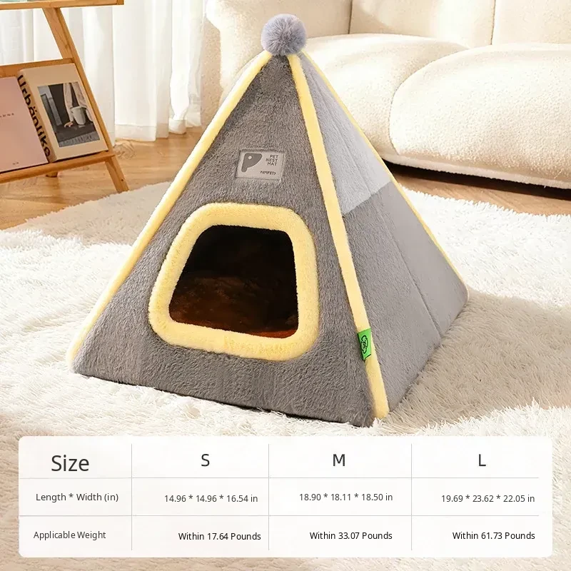 【Extra Thick & Warm, Windproof & Temperature Locking】Gray Triangle Pet Bed