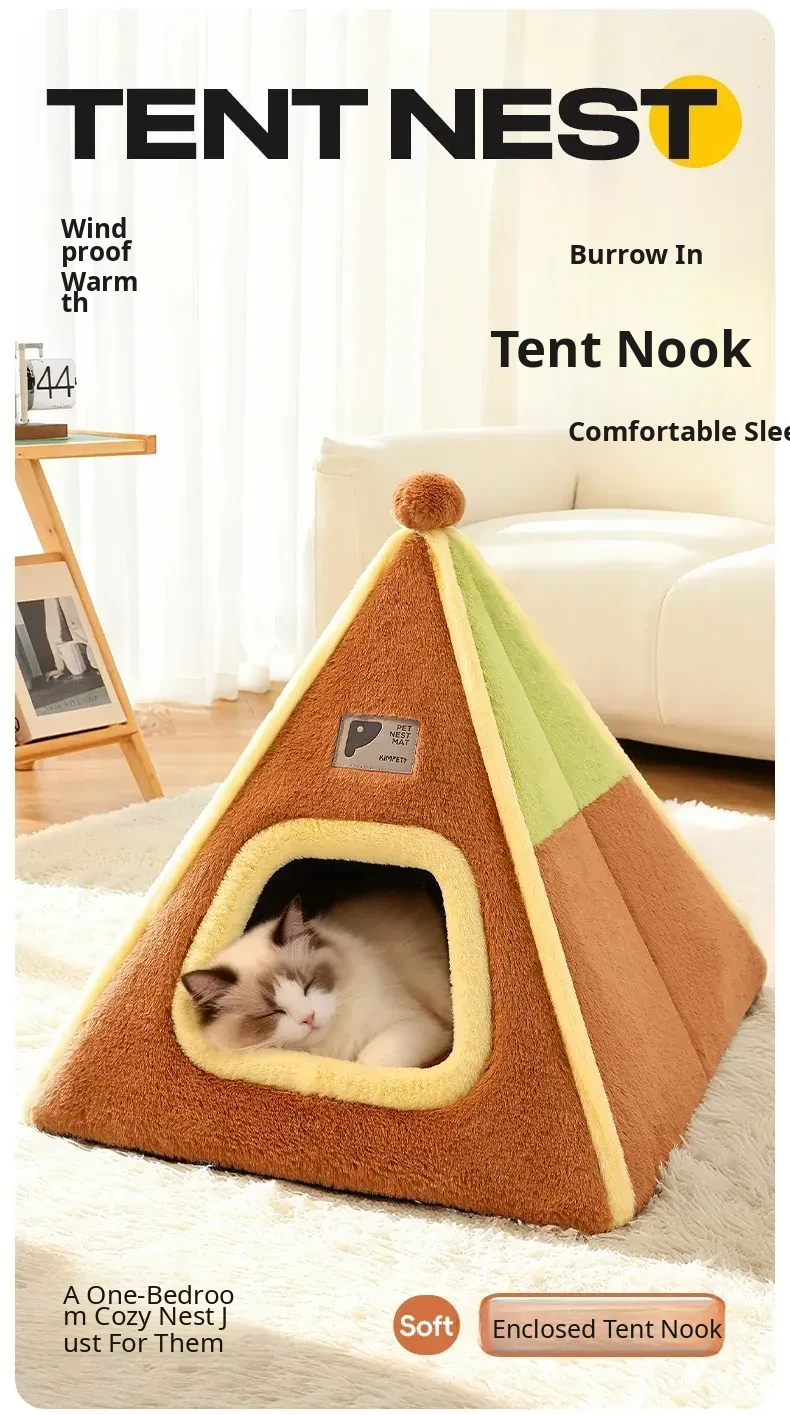 Cozy Winter Cat Tent – Warm Enclosed Cat House for All Seasons, Perfect for Pets Seeking Comfort and Security While Sleeping – Ideal for Winter Use