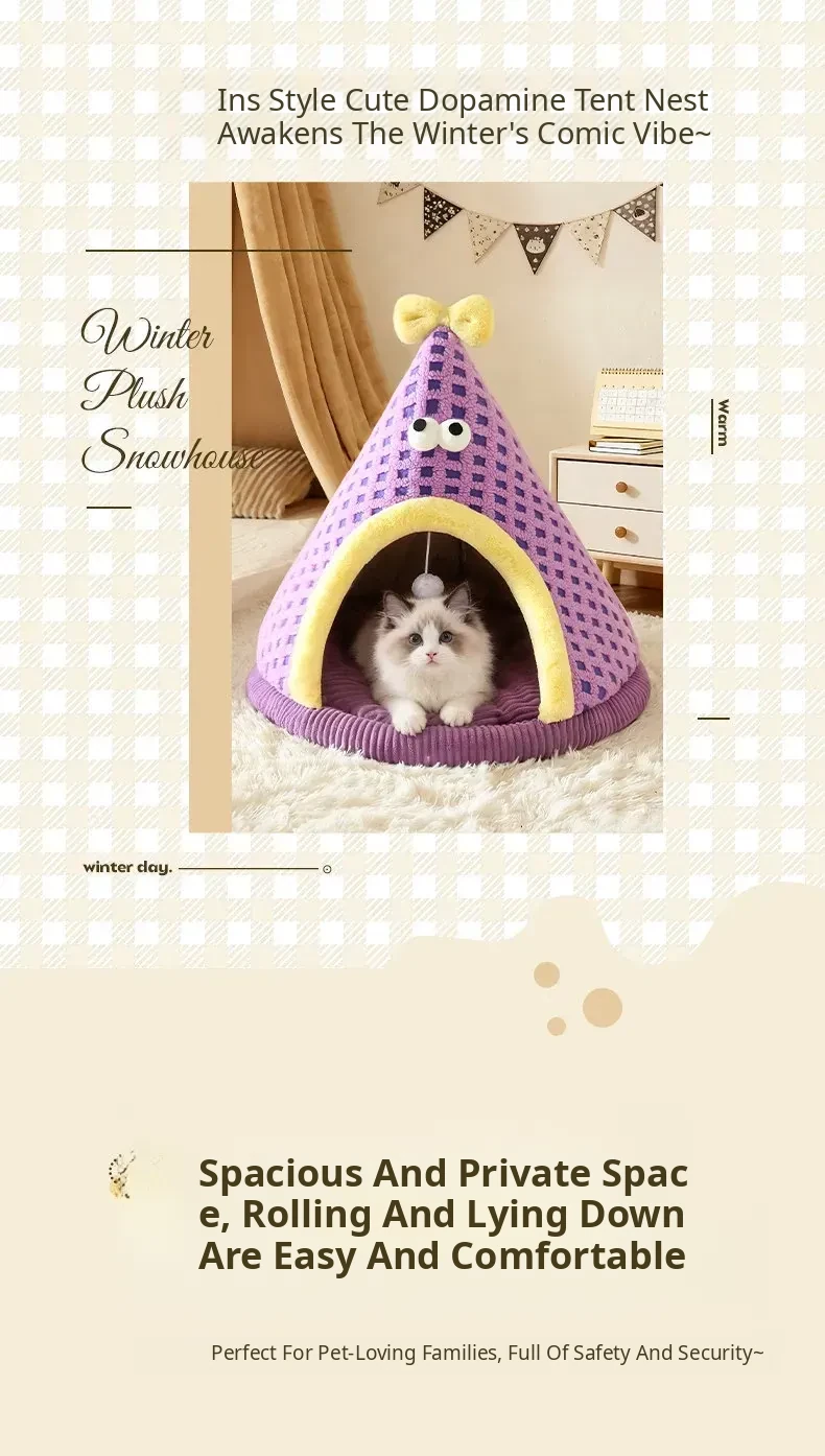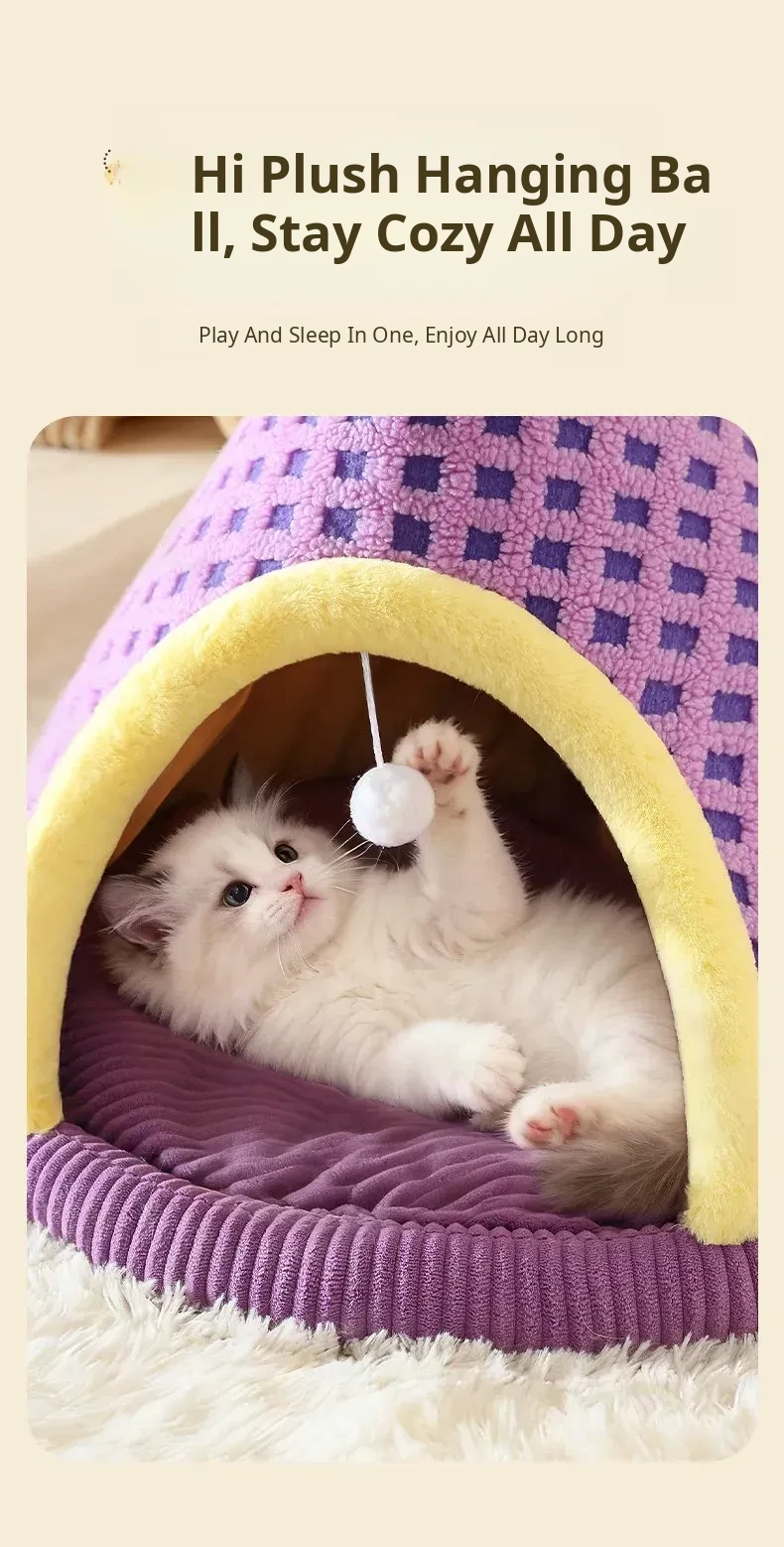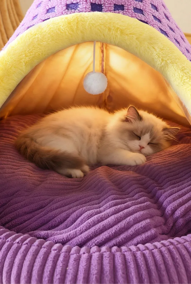 Cozy Winter Cat Tent - Enclosed Cat Bed for Kittens, Providing Safety and Comfort for Sleep. Perfect for All Seasons - Essential Pet Supplies for Your Feline Friend!