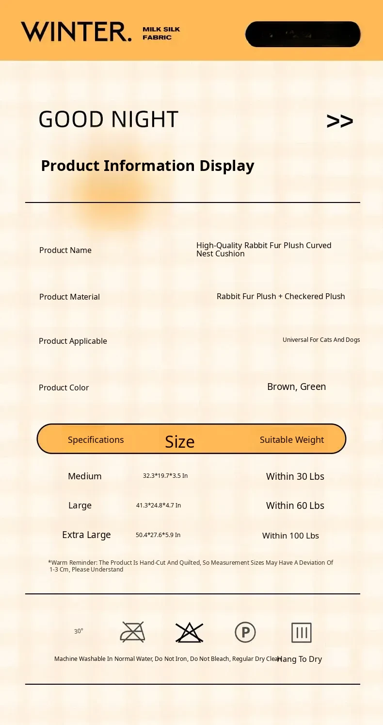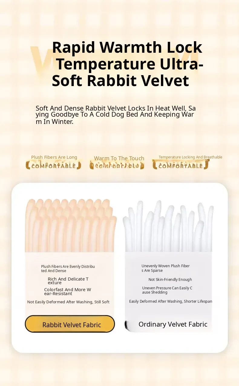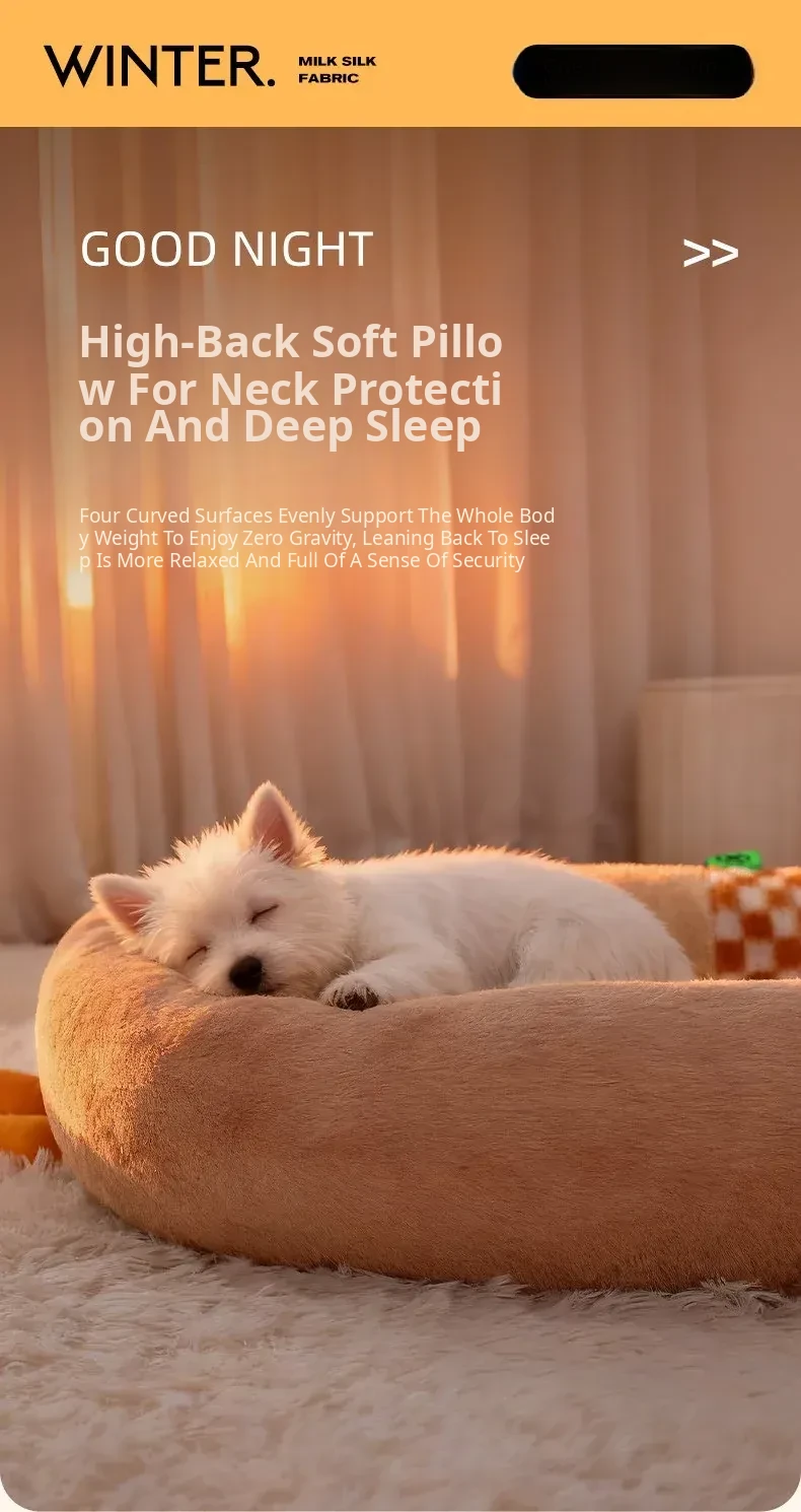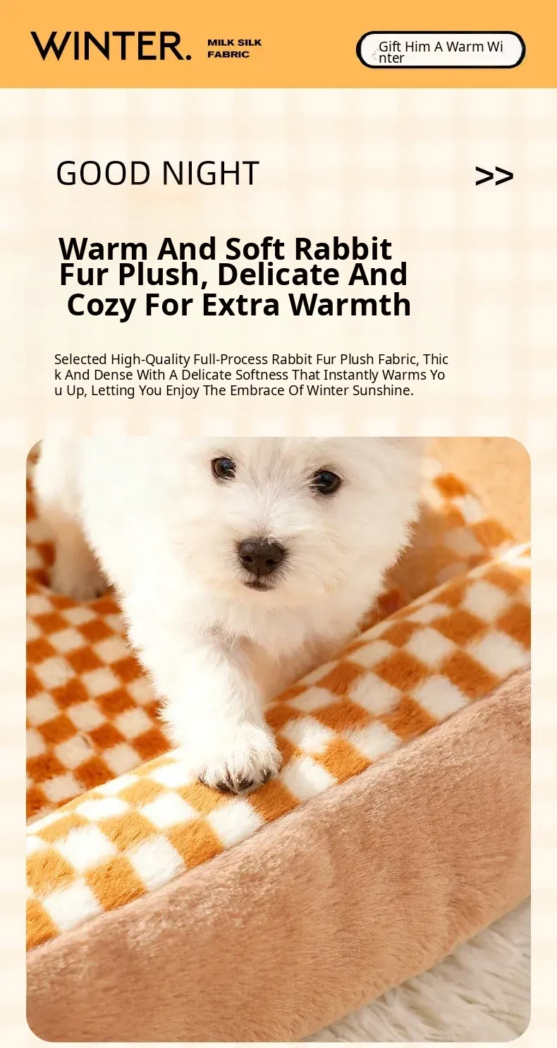 High-Quality Large Dog Bed - Upgraded Rabbit Fur Plush, Soft & Comfortable Sleep - Khaki Brown