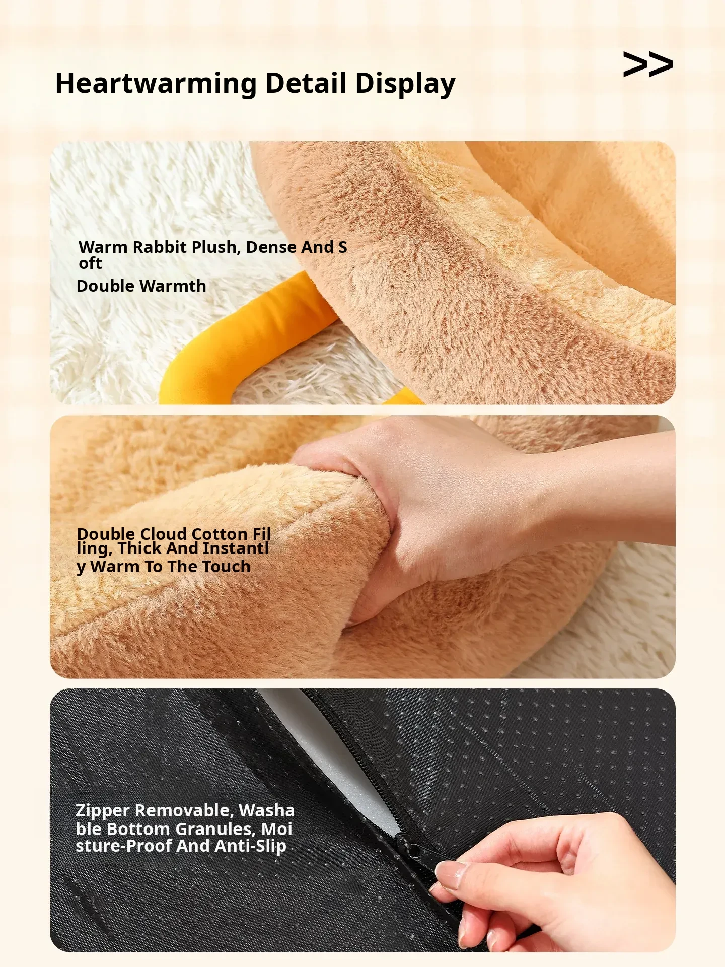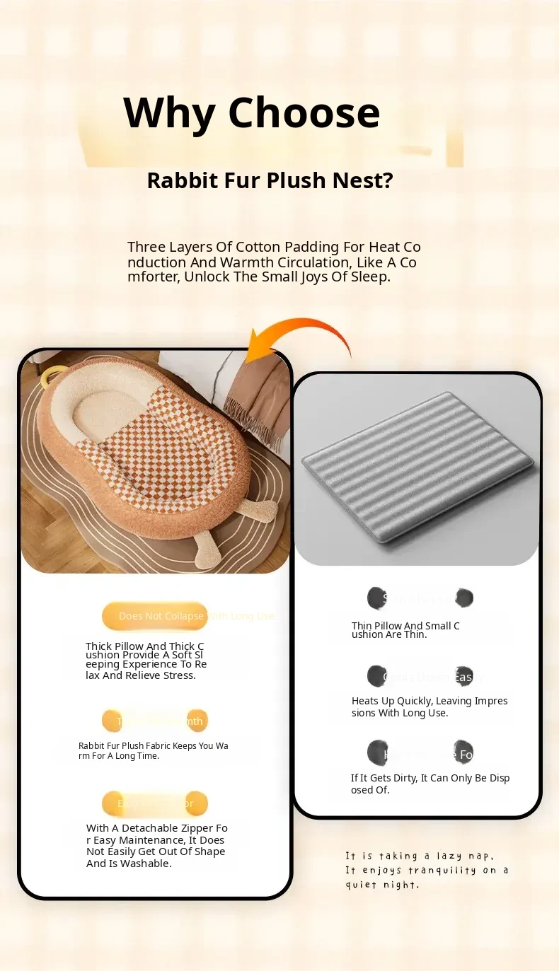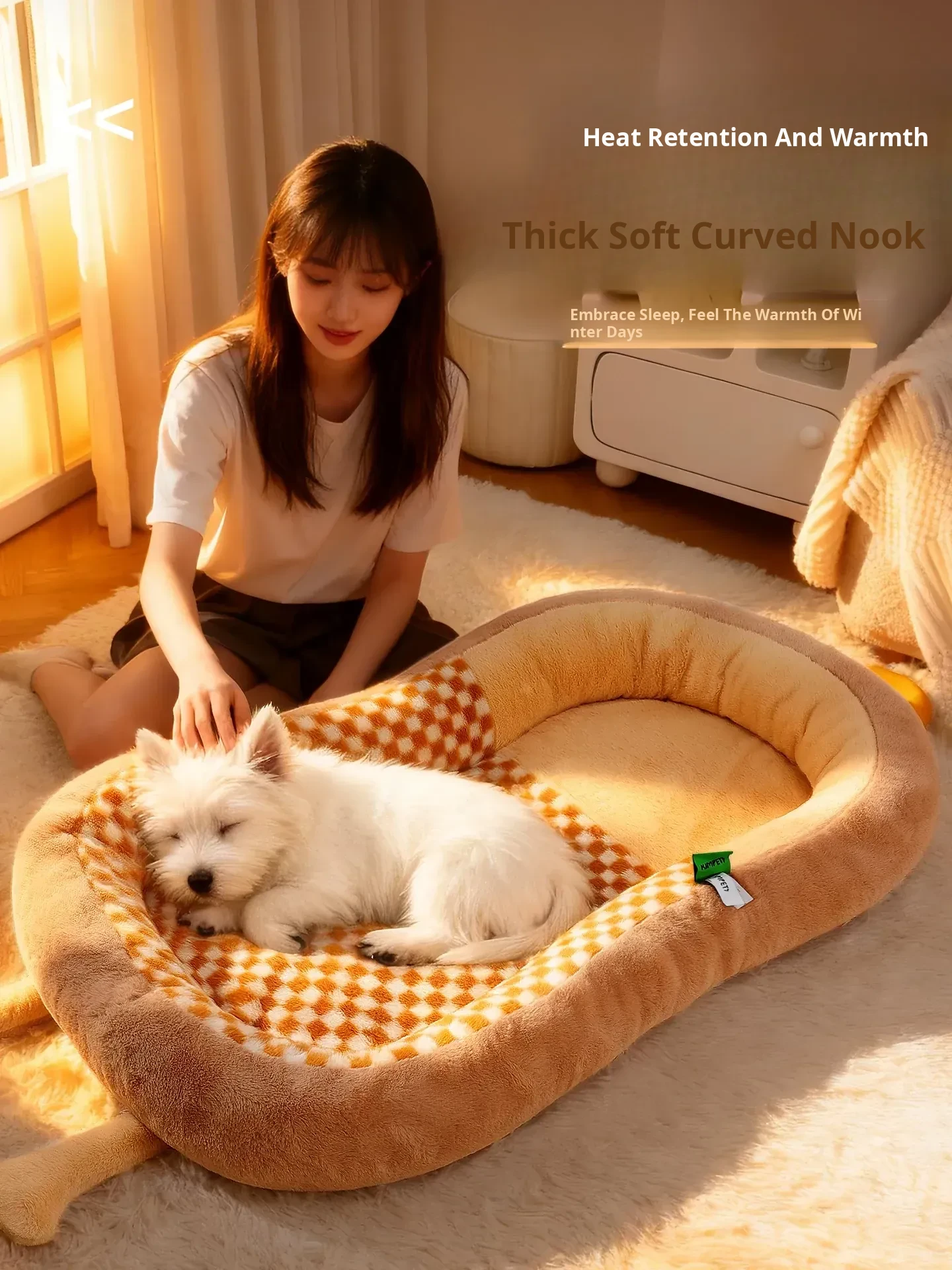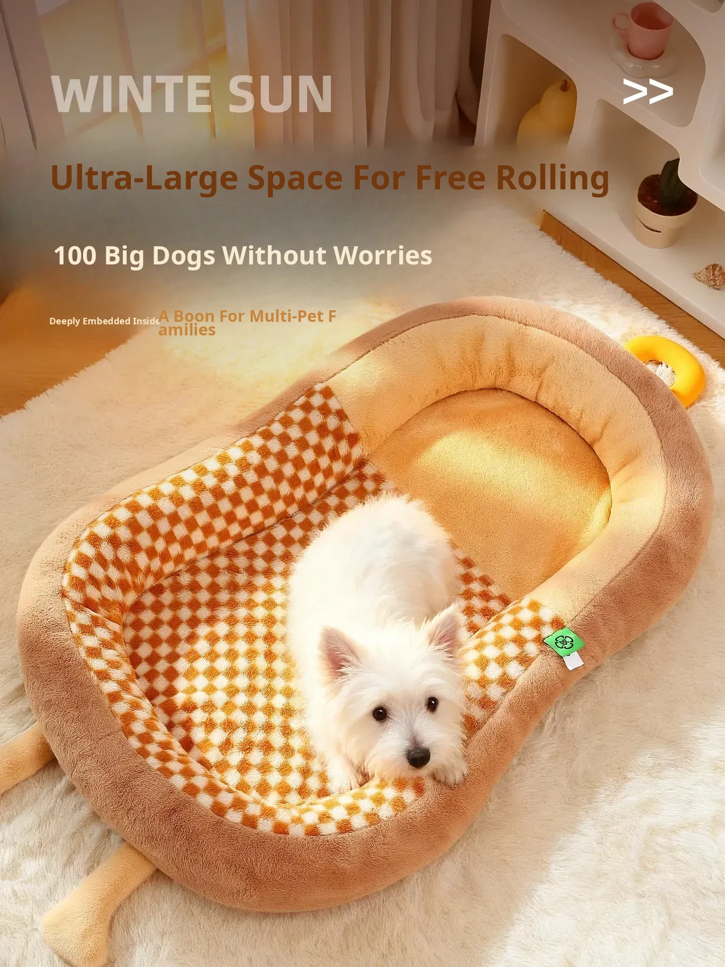High-Quality Large Dog Bed - Upgraded Rabbit Fur Plush, Soft & Comfortable Sleep - Khaki Brown