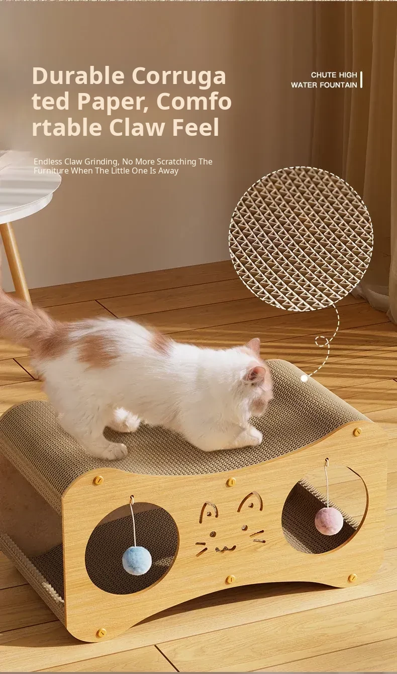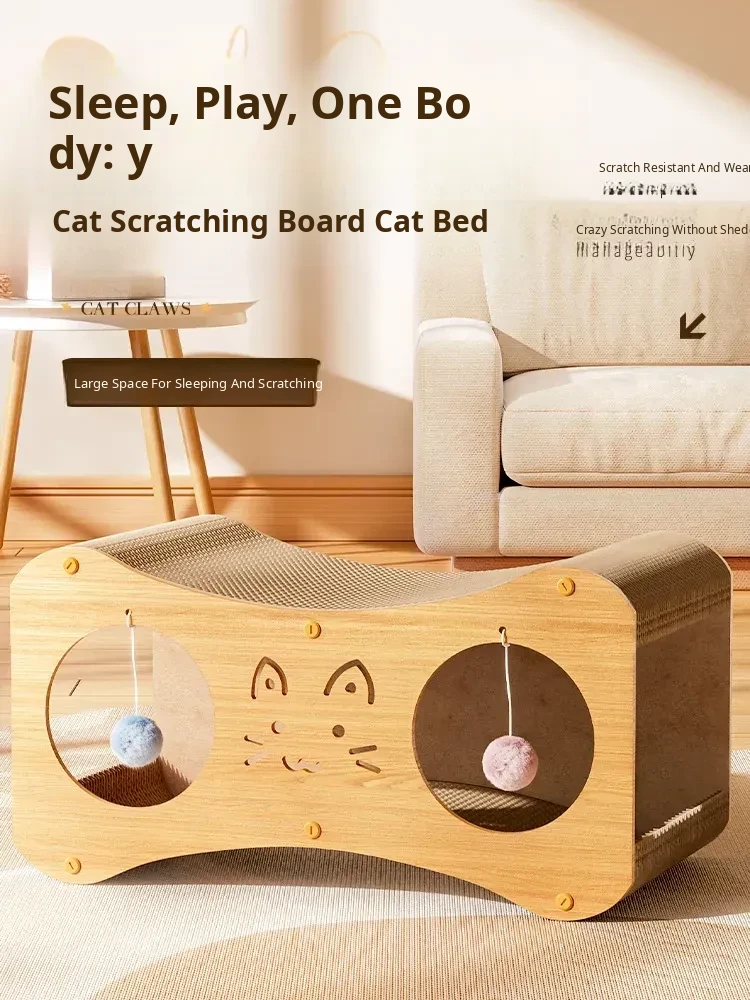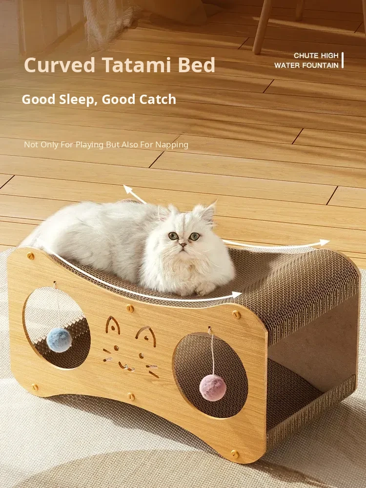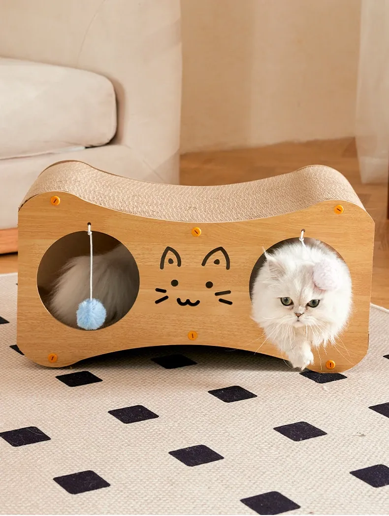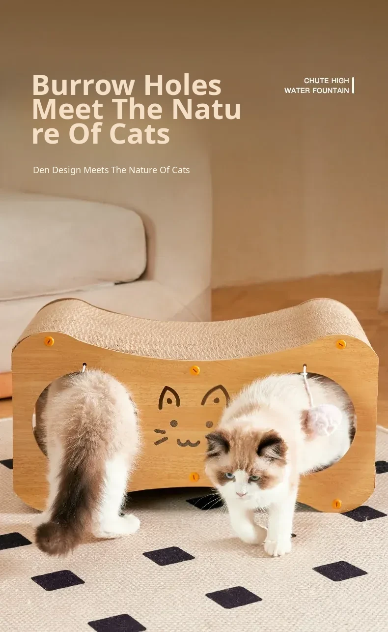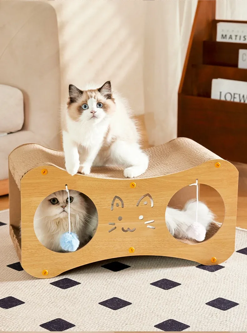 Curved Double-Hole Cat Scratcher - Large, Natural Finish