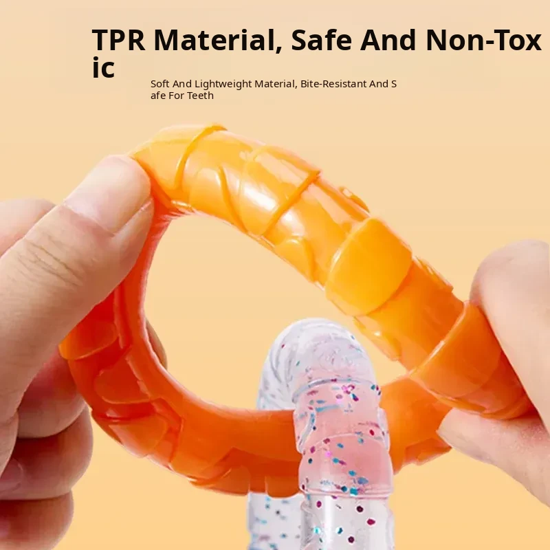 ⭐Orange-Purple Three-Ring Teething Toy - Single Pack [Interactive & Stress-Relieving, Teething & Dental Cleaning]