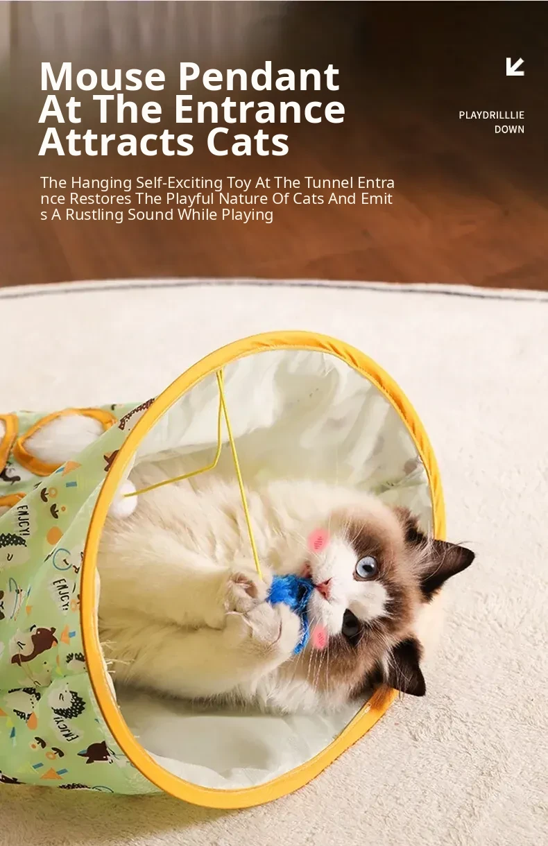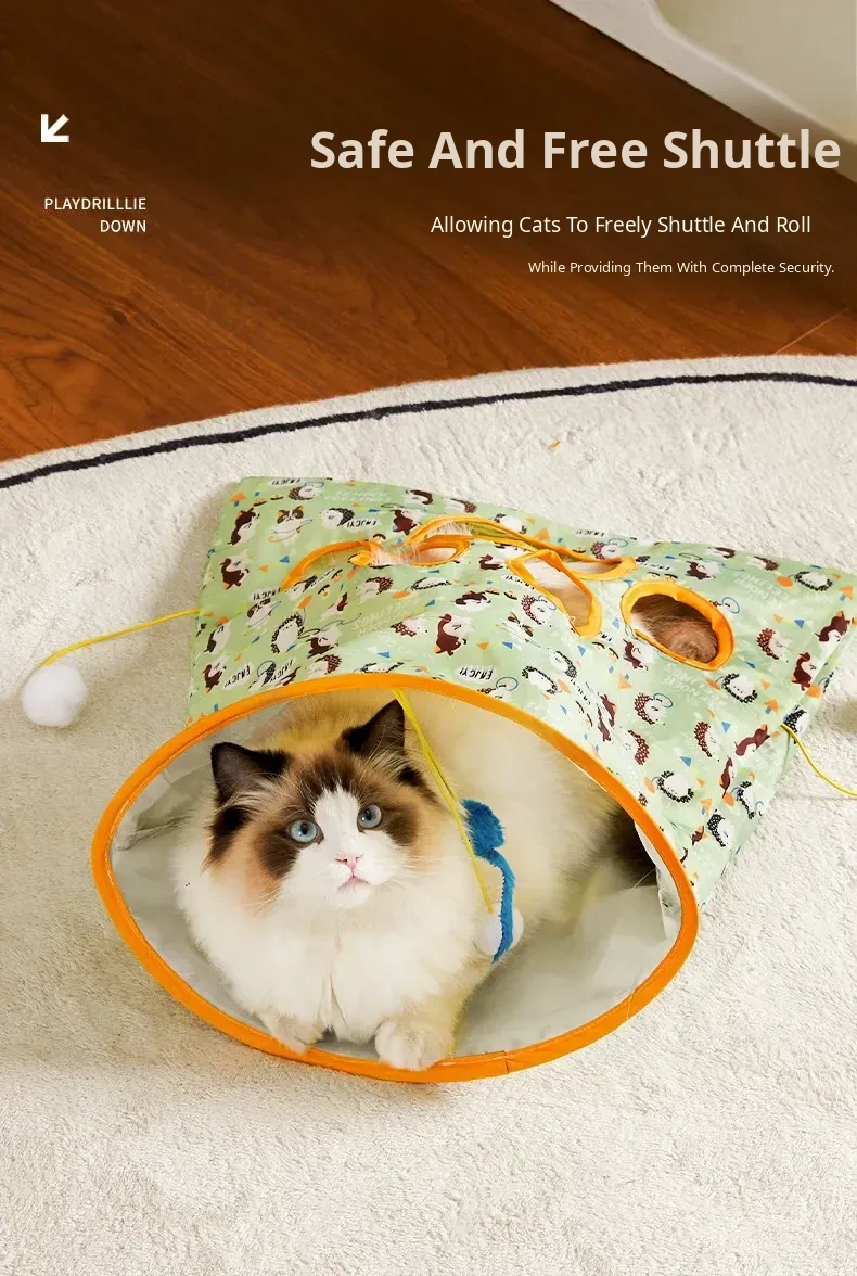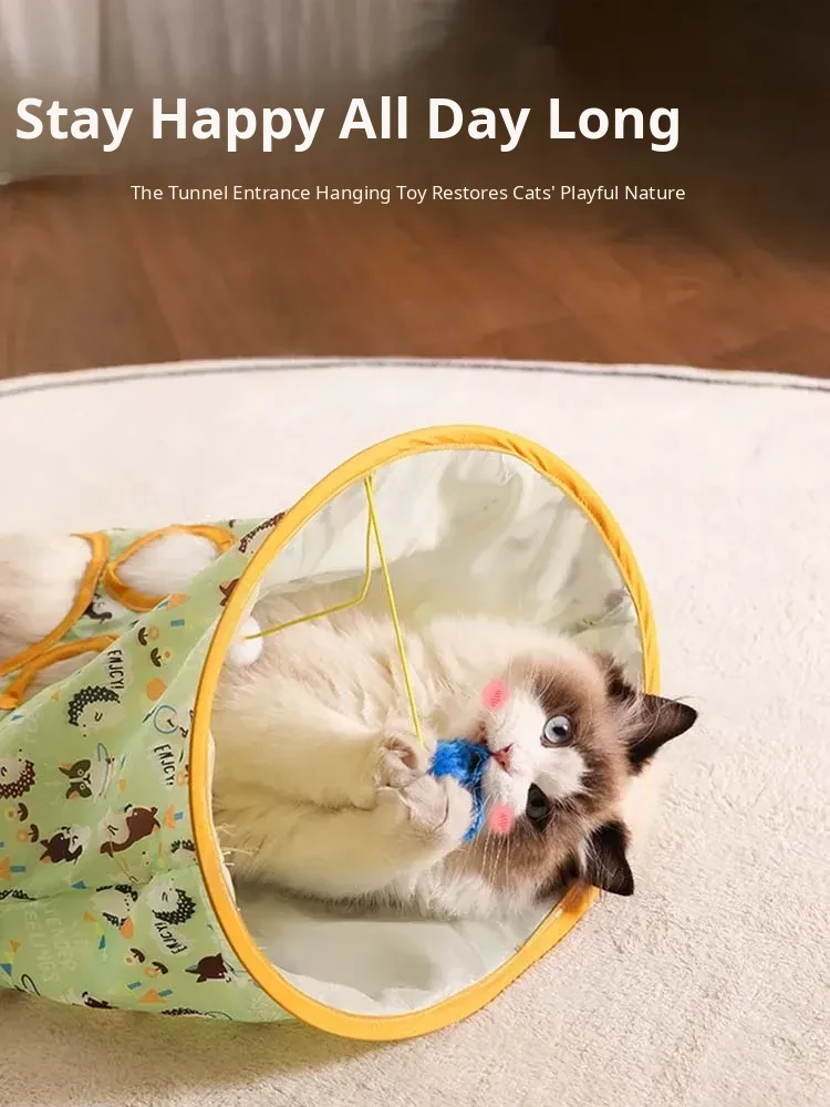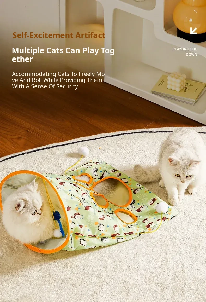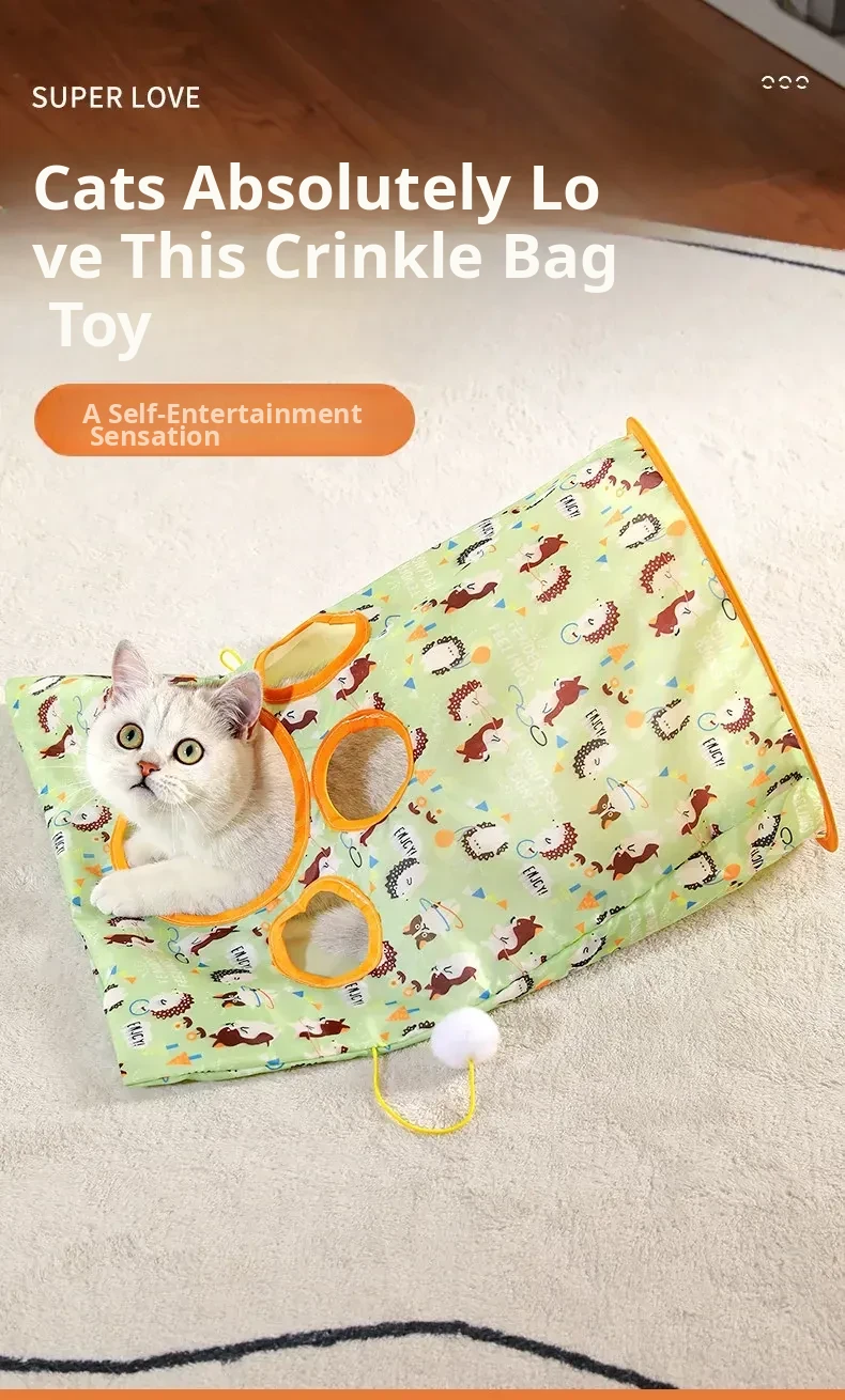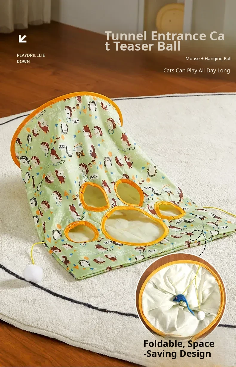 Exciting Cat Tunnel Toy - Interactive Pet Hideaway for Kittens and Cats, Perfect for Chewing, Teething, and Endless Fun with Wand Teaser! Durable, Engaging, and Ideal for Playtime!