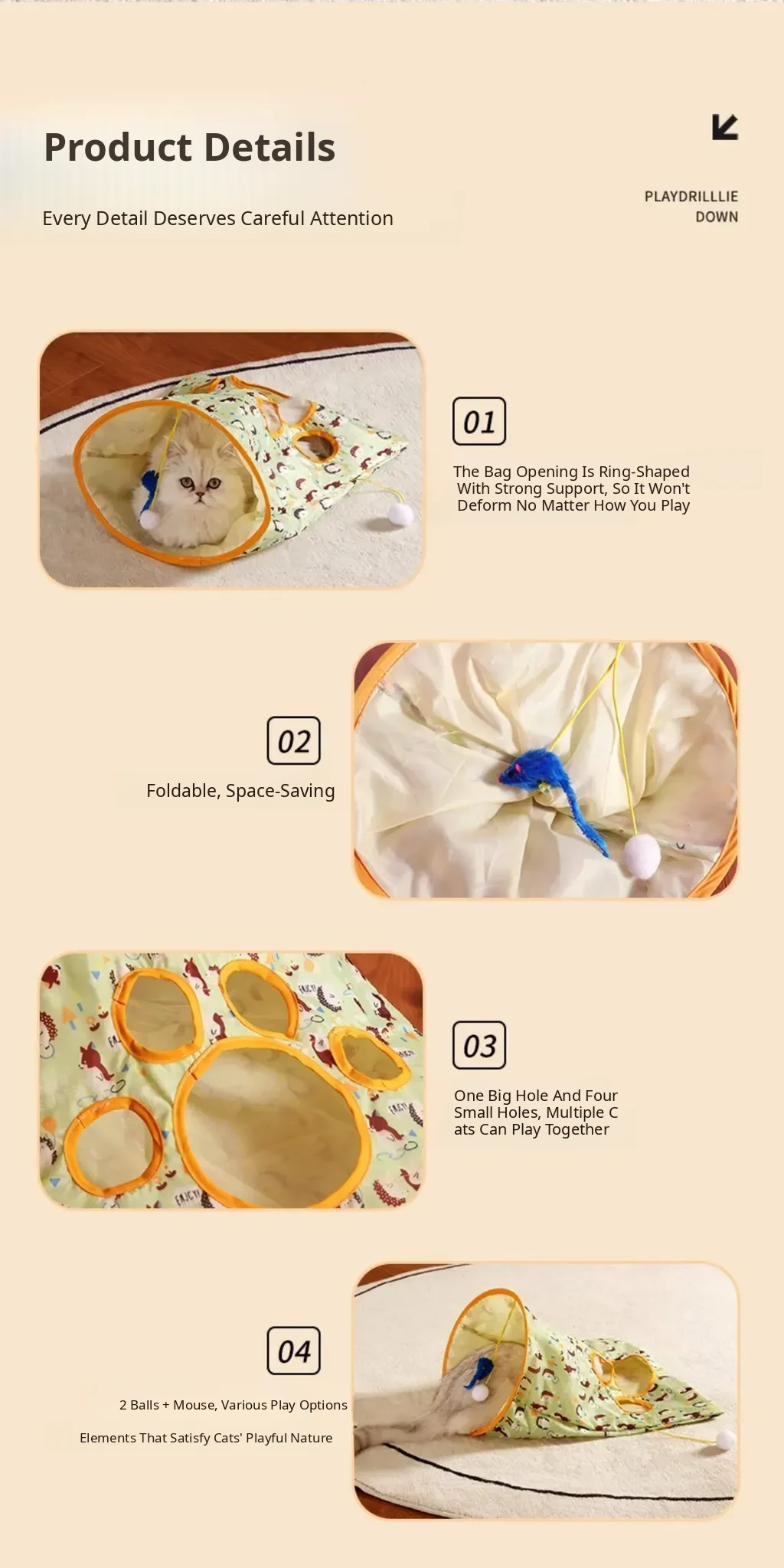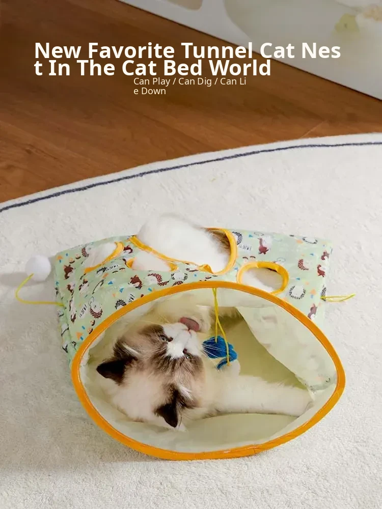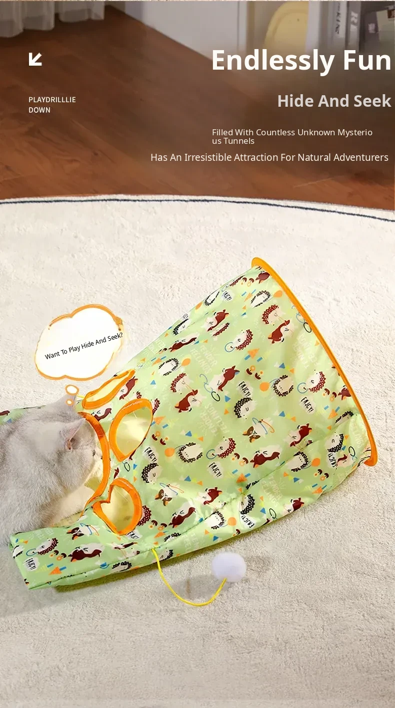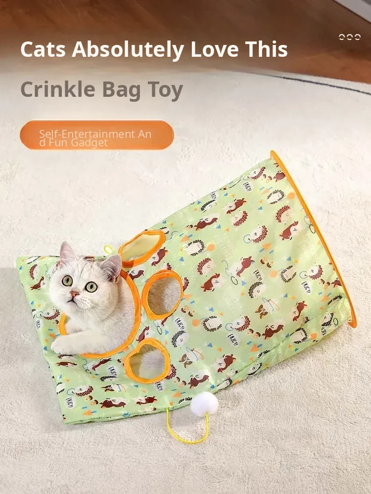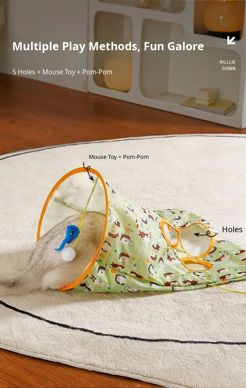 Exciting Cat Tunnel Toy - Interactive Pet Hideaway for Kittens and Cats, Perfect for Chewing, Teething, and Endless Fun with Wand Teaser! Durable, Engaging, and Ideal for Playtime!