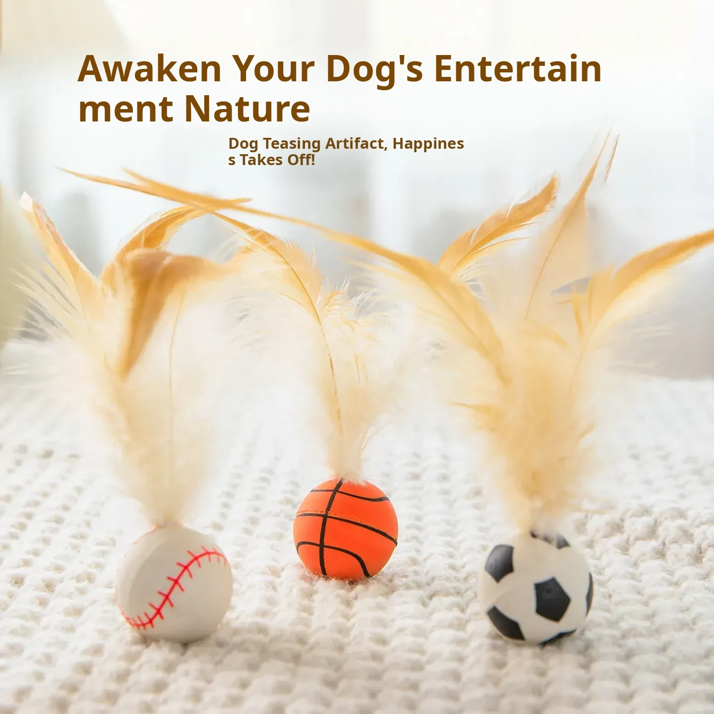 Interactive Bouncy Dog Toy Ball - Perfect for Teddy and Poodle Breeds! Engaging Exercise Ball with Feathers to Keep Your Pet Entertained and Burn Off Energy!