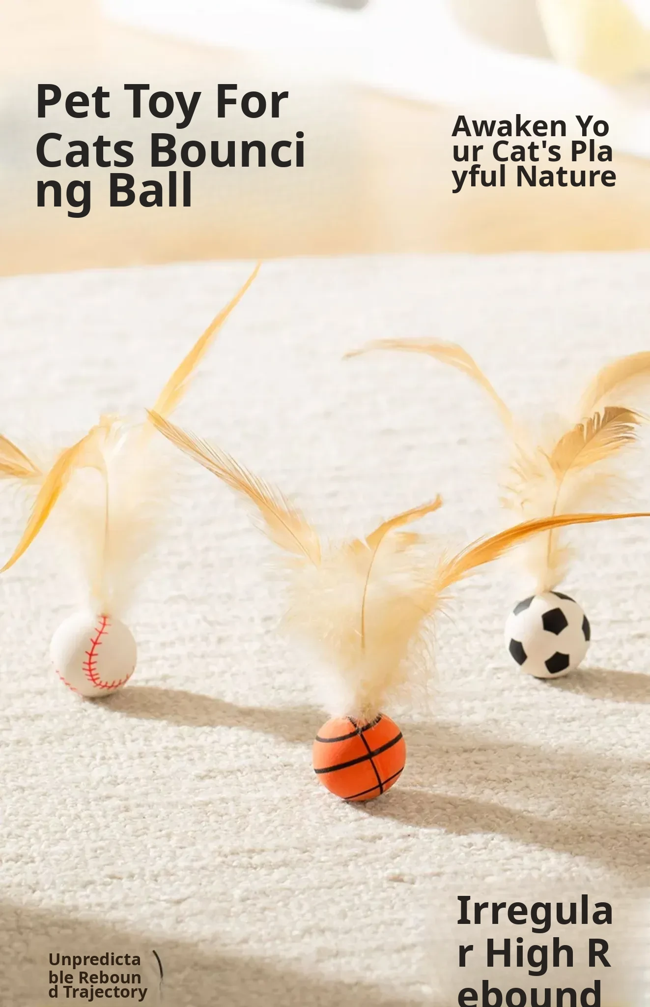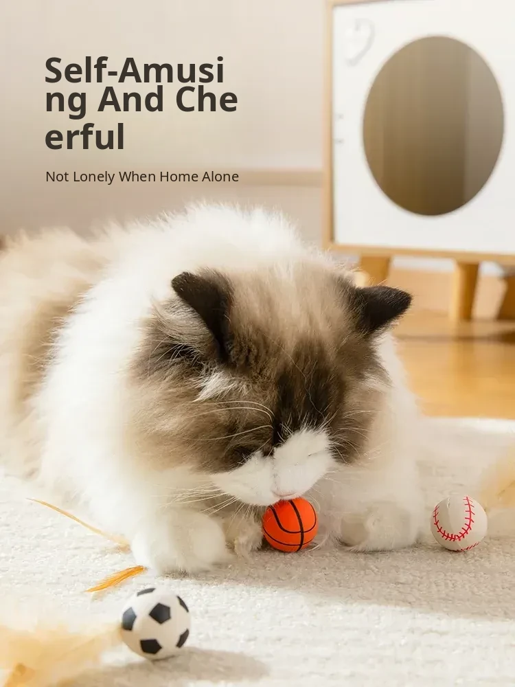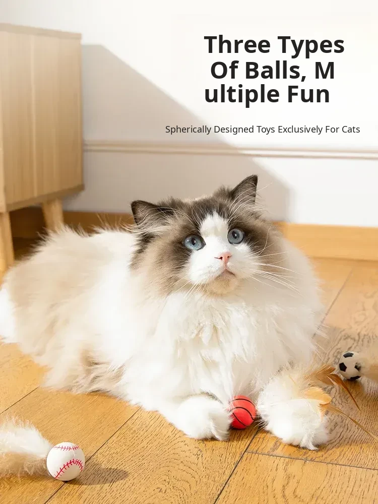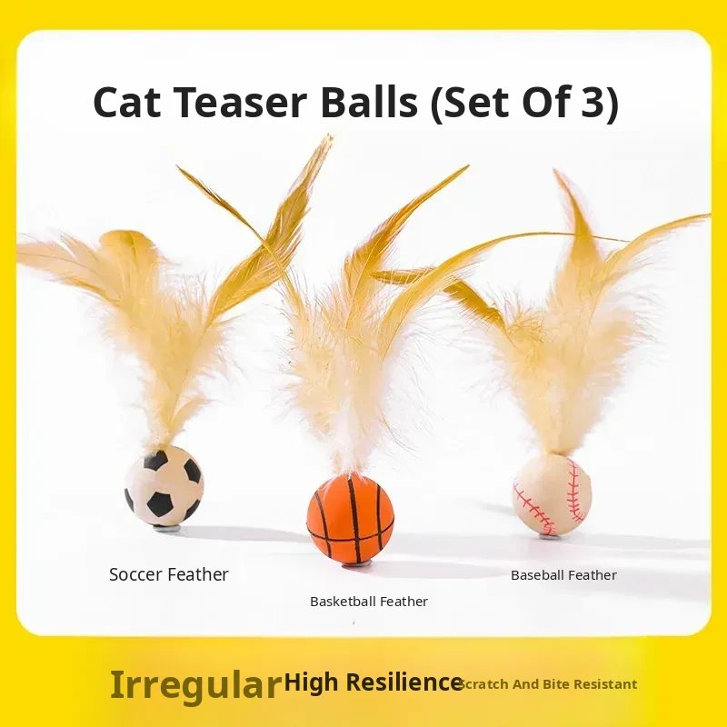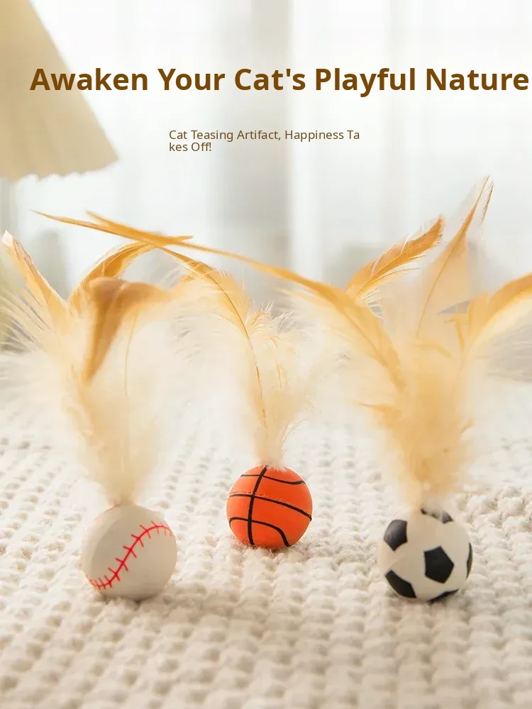 Interactive Cat Toy - Bouncy Balls with Feather Teaser, Perfect for Kittens to Burn Off Energy and Stay Entertained!