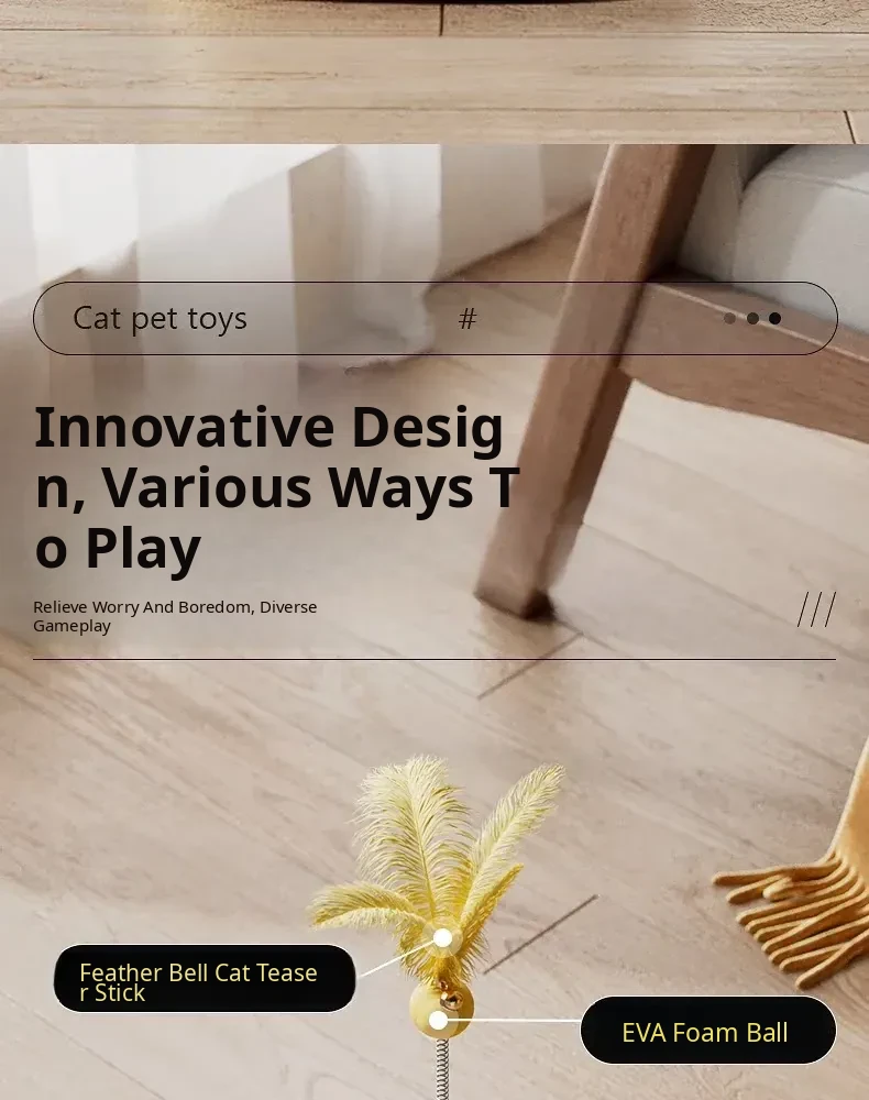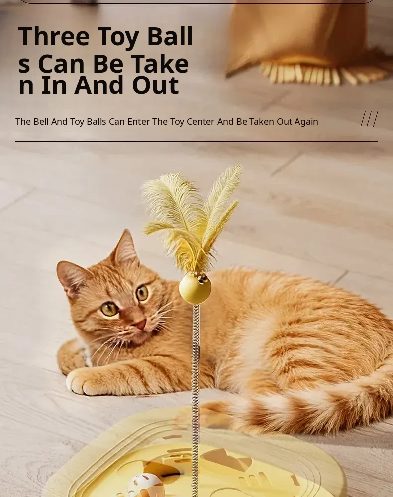 Interactive Cat Toy - Feather Teaser Wand & Puzzle Play Box for Cats - Perfect for Keeping Your Feline Friend Entertained and Active! Ideal for Kittens and Adult Cats Alike!