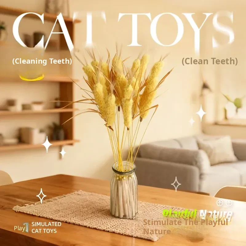 Lavender Cat Teaser Stick - Interactive Chew Toy for Kittens and Cats, Realistic Grass Design for Endless Fun and Energy Release, Perfect for Playtime and Engagement