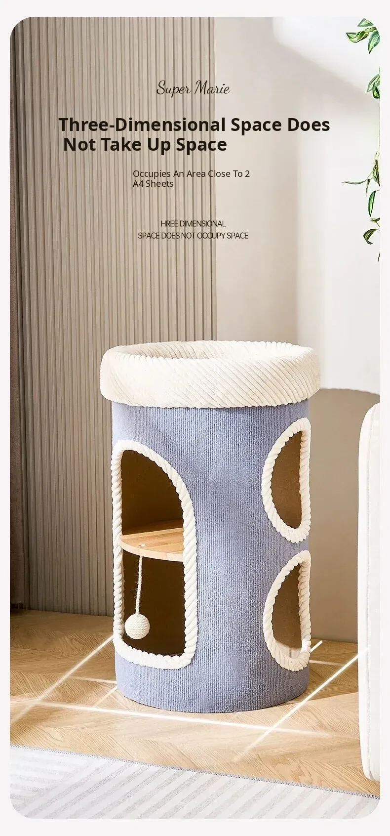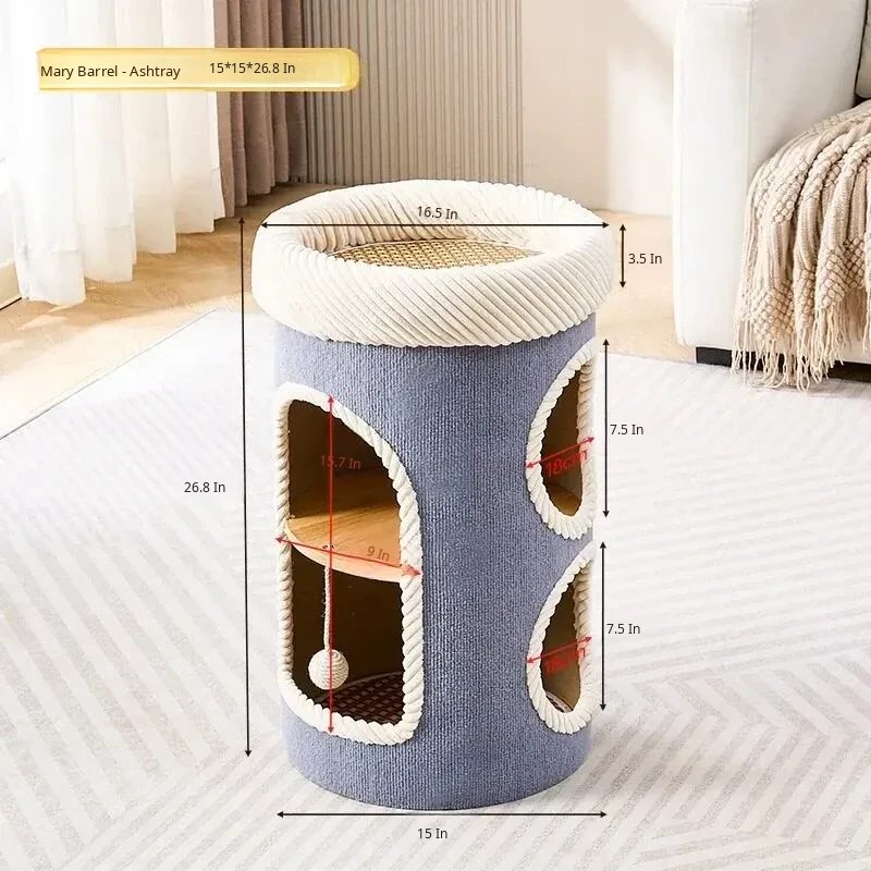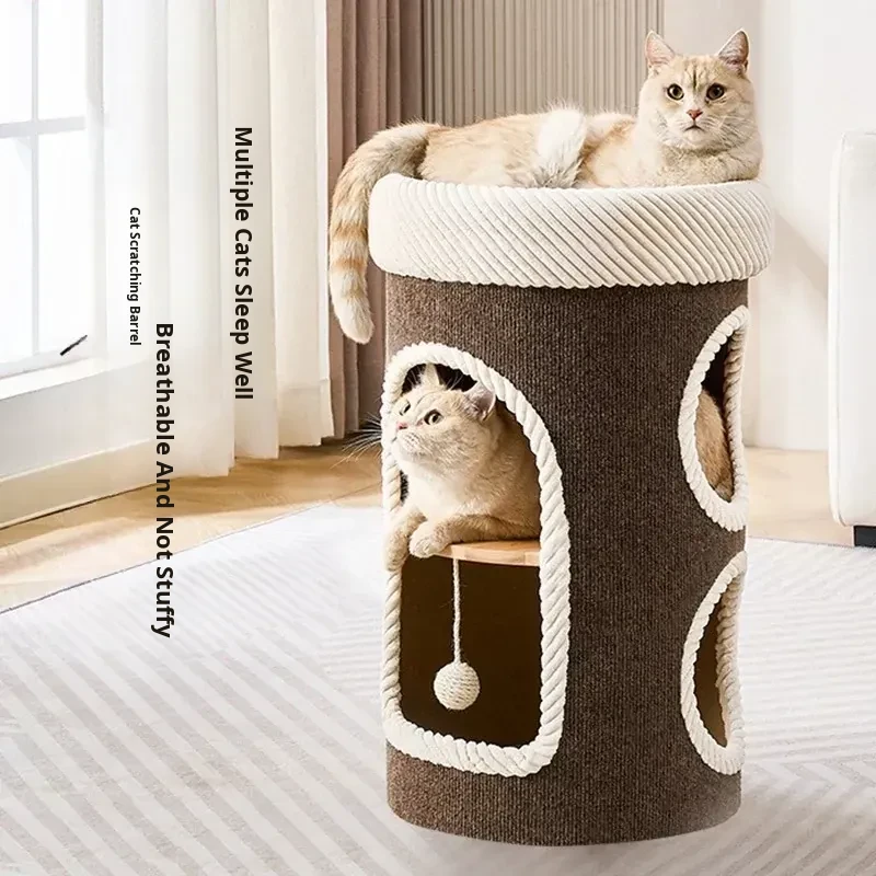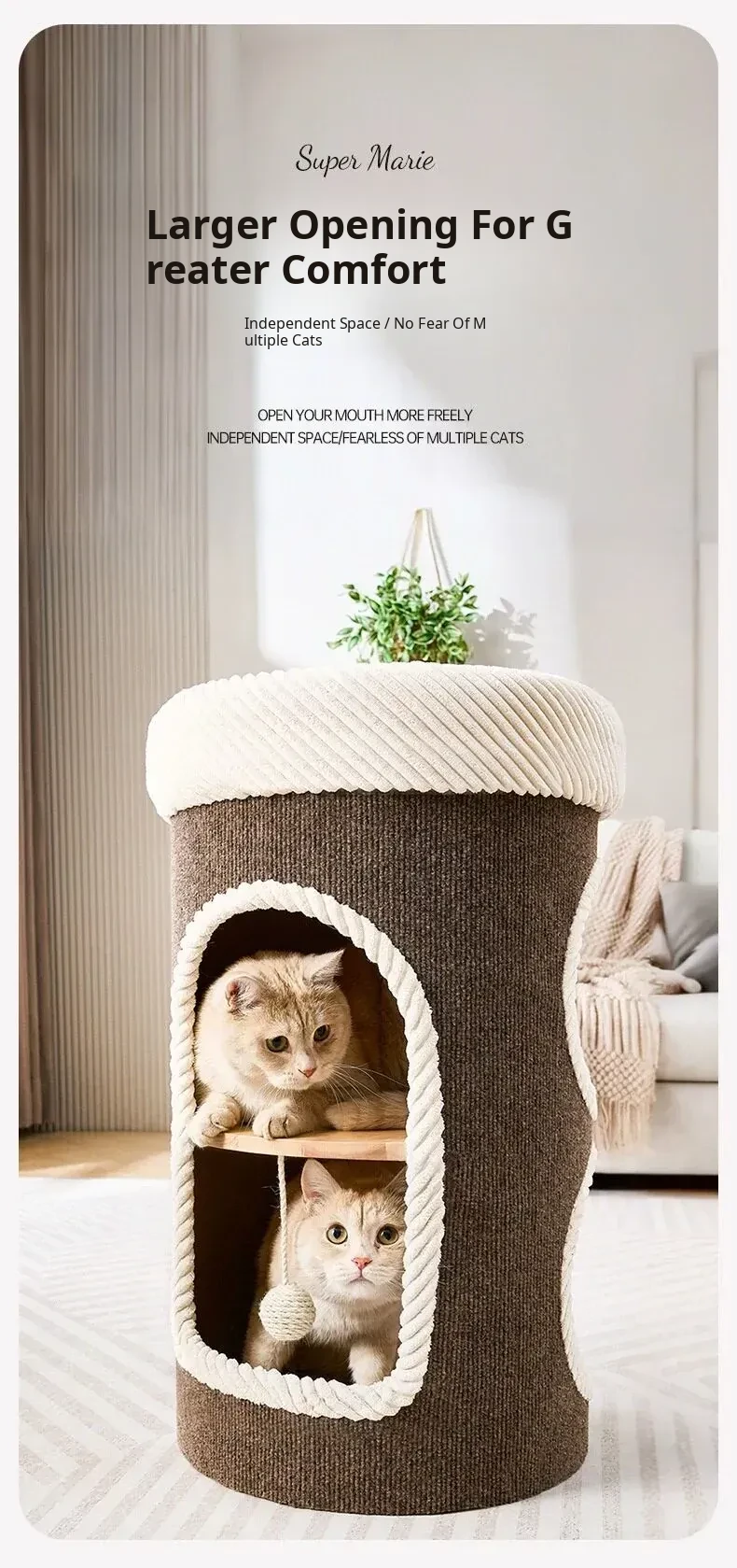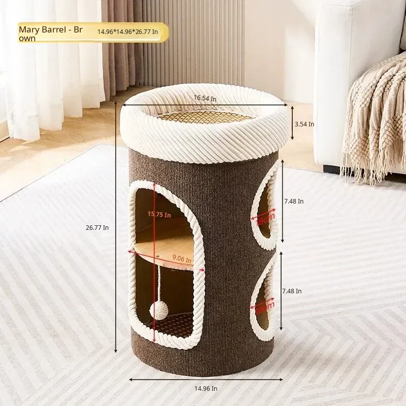 Multi-Level Cat Tree with Cozy Hideaway and Scratching Barrel - Perfect for Multiple Cats to Sleep and Play, Ideal for Kittens and Home Use, Suitable for Balcony Spaces