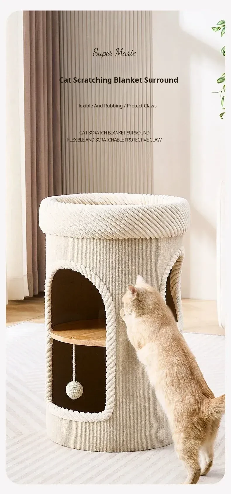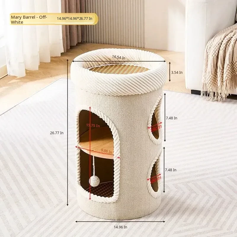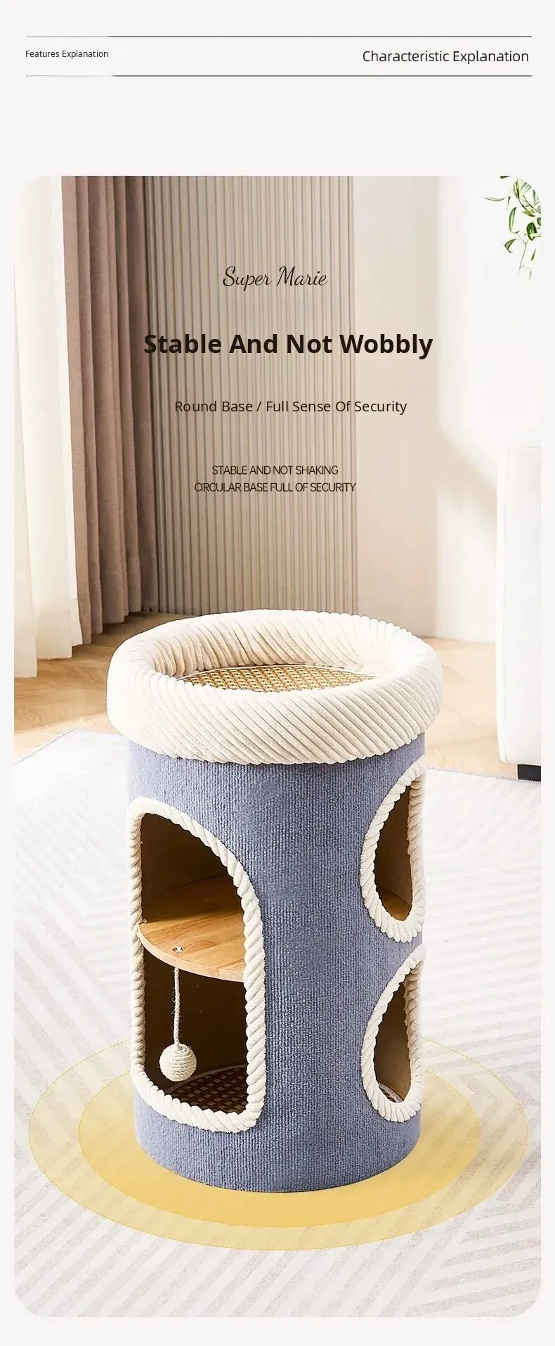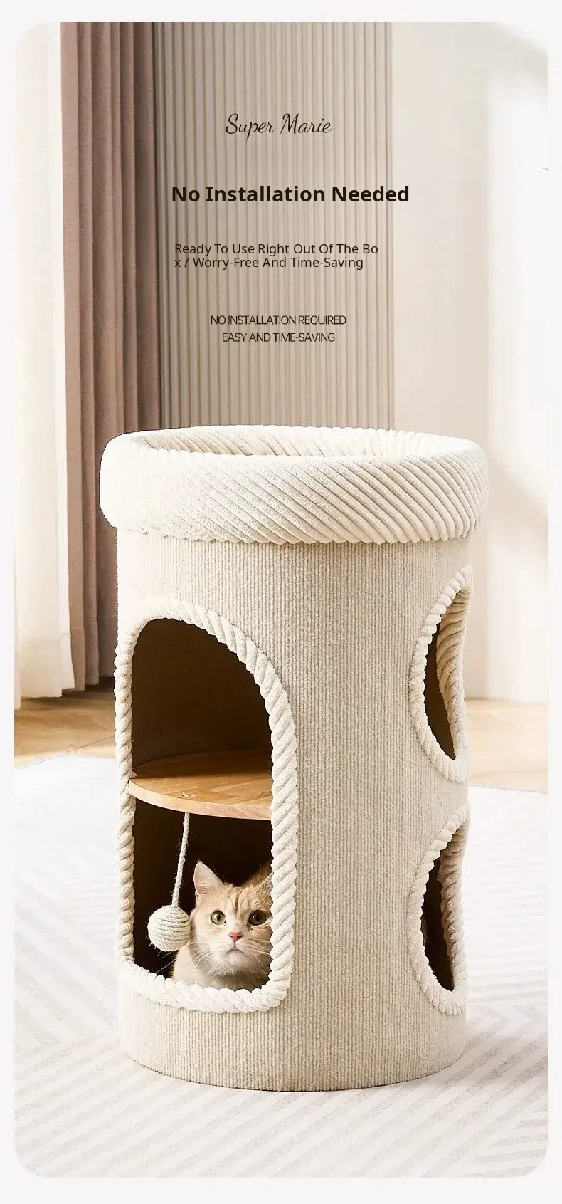 Multi-Level Cat Tree with Cozy Hideaway and Scratching Barrel - Perfect for Multiple Cats to Sleep and Play, Ideal for Kittens and Home Use, Suitable for Balcony Spaces