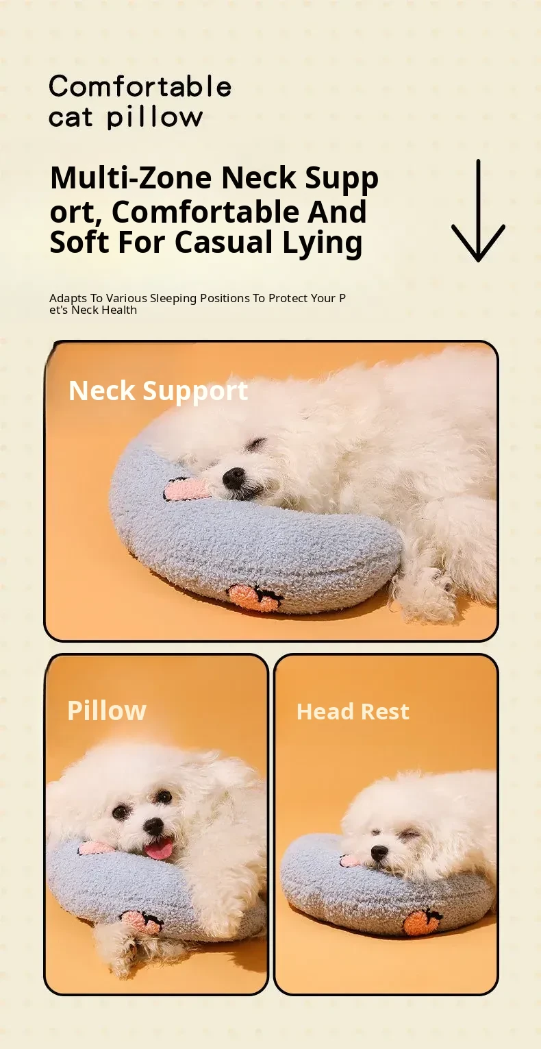 Soft U-Shaped Pillow for Dogs and Cats - Cozy Sleeping Pad with Pet Blanket for Ultimate Comfort, Perfect for Small Dogs and Cats to Rest and Relax.