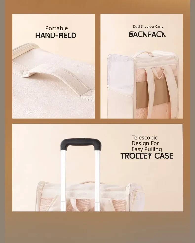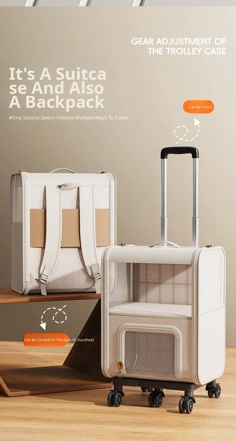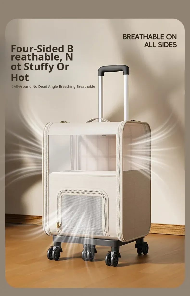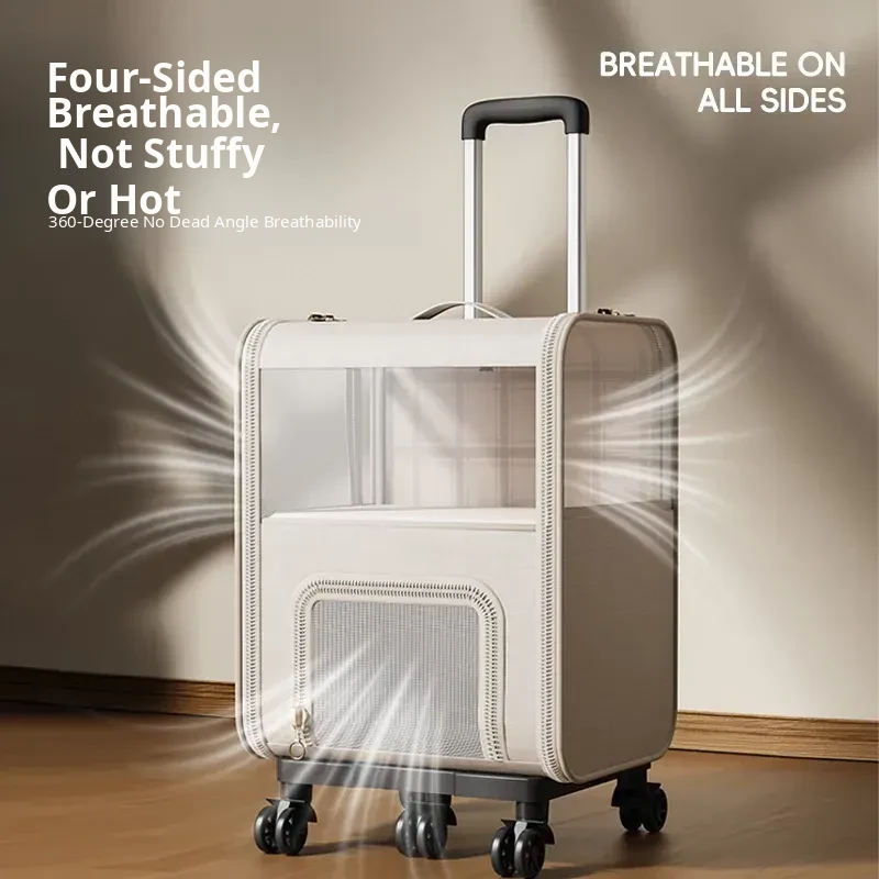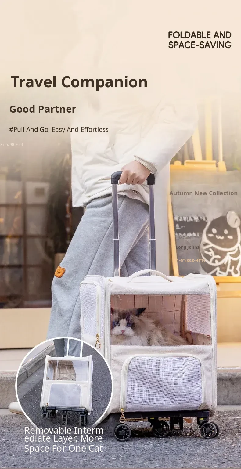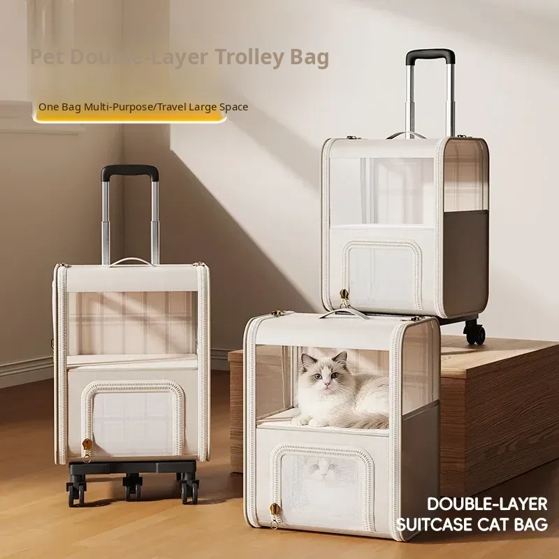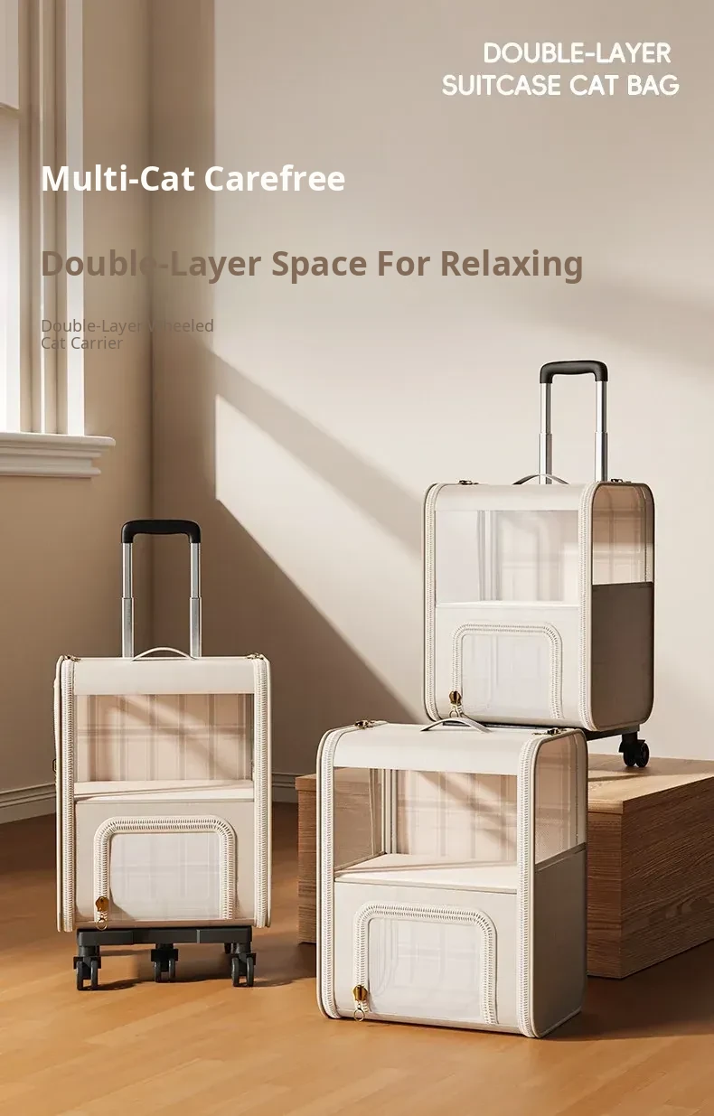 Stylish Cat Carrier Backpack - Spacious Dual-Layer Rolling Pet Suitcase for Stress-Free Travel with Your Feline Friend