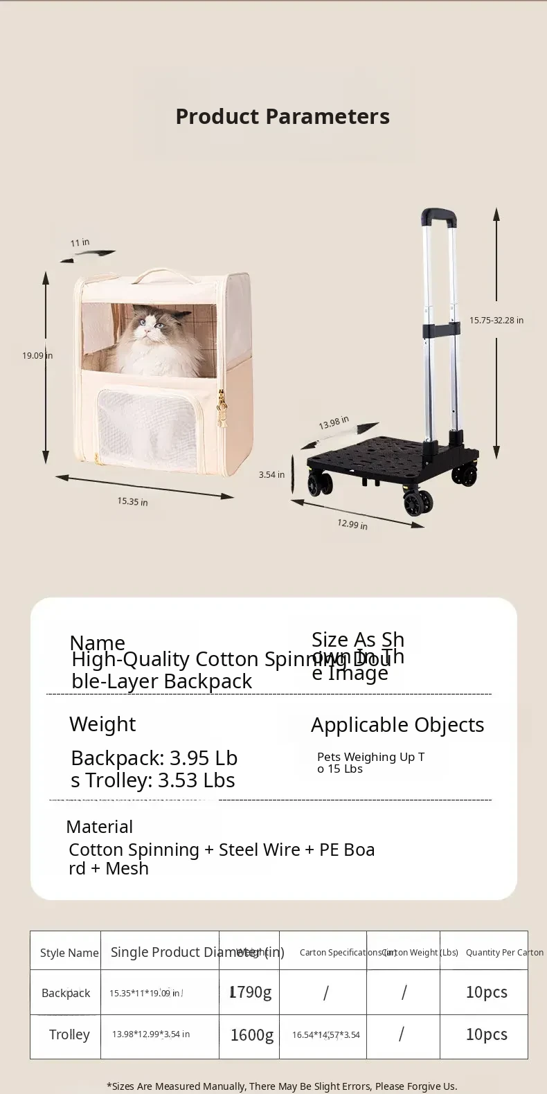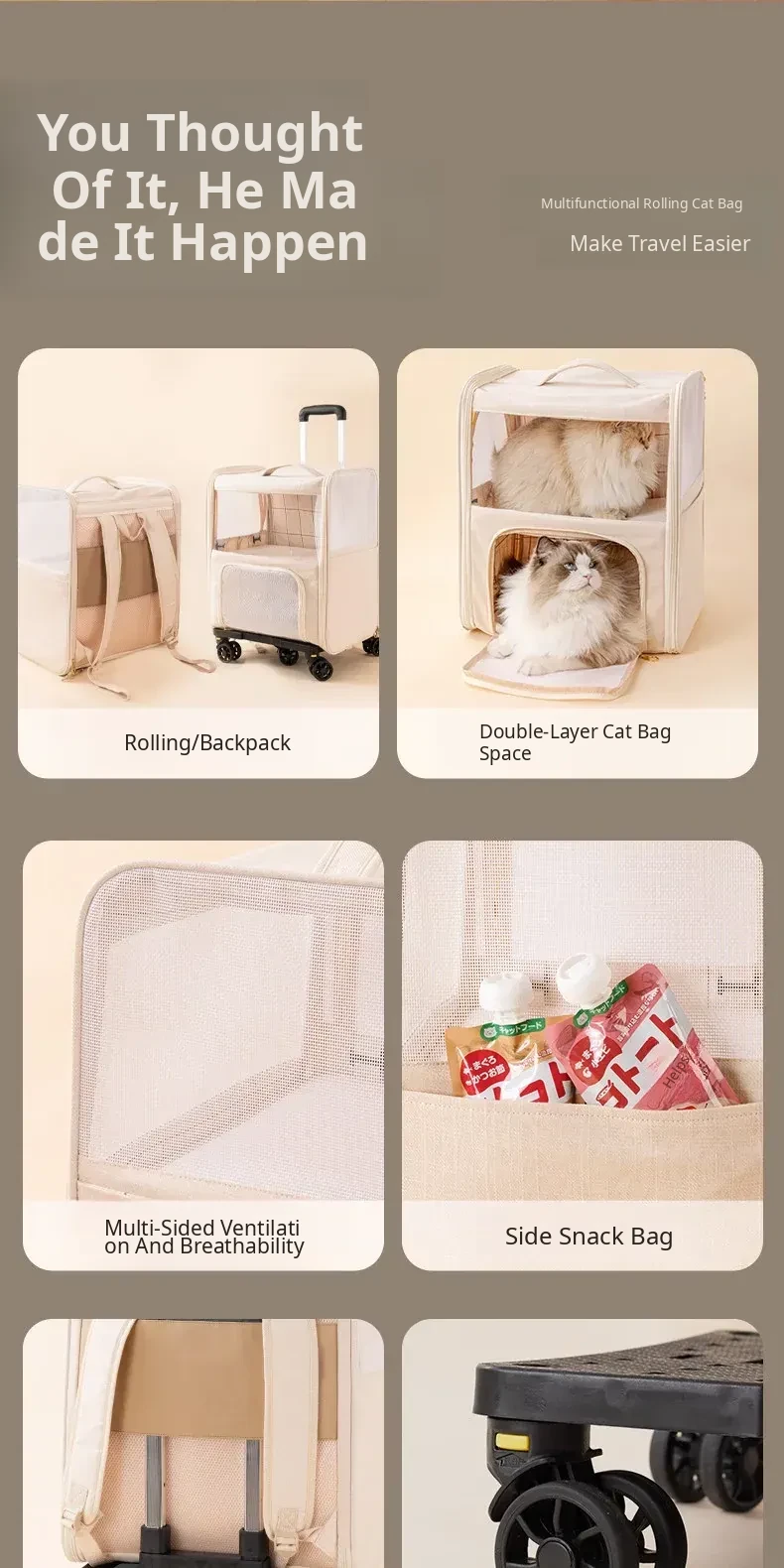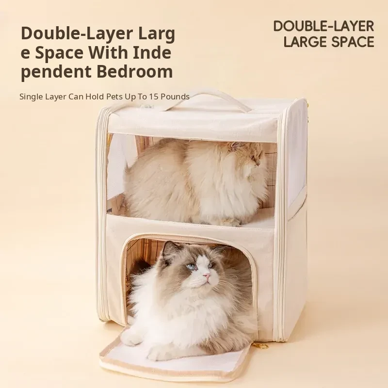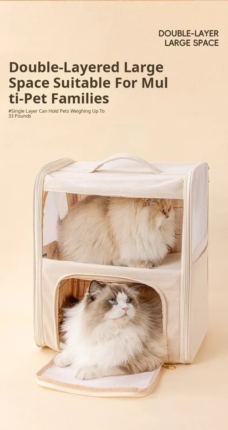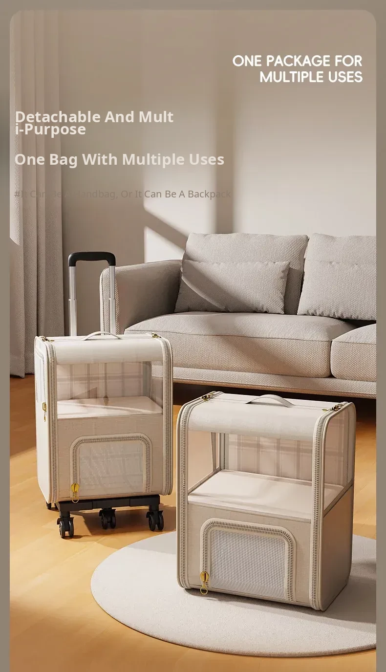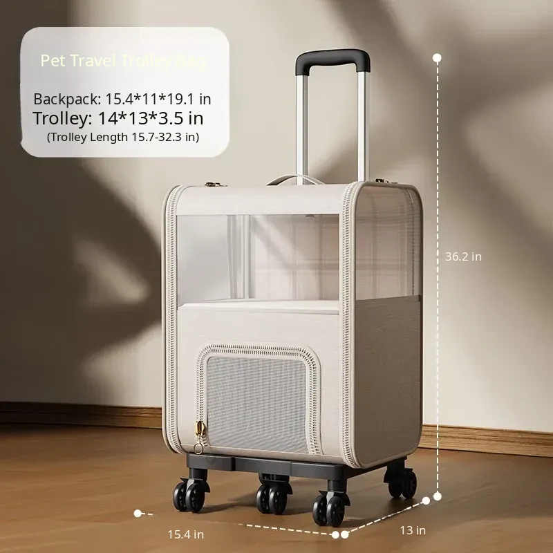 Stylish Cat Carrier Backpack - Spacious Dual-Layer Rolling Pet Suitcase for Stress-Free Travel with Your Feline Friend