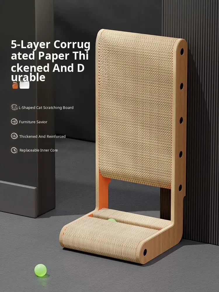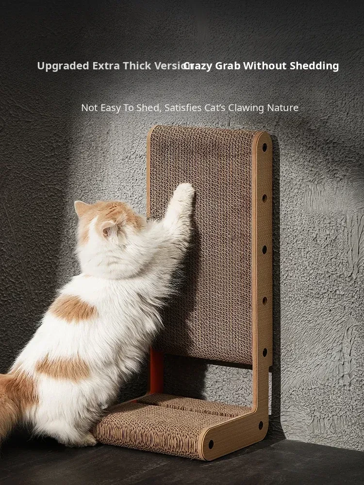 Thickened Vertical L-Shaped Cat Scratching Post and Bed Combo - Durable, Scratch-Resistant, and No Shedding! Perfect for Large Cats, Made with Corrugated Paper for Endless Fun!