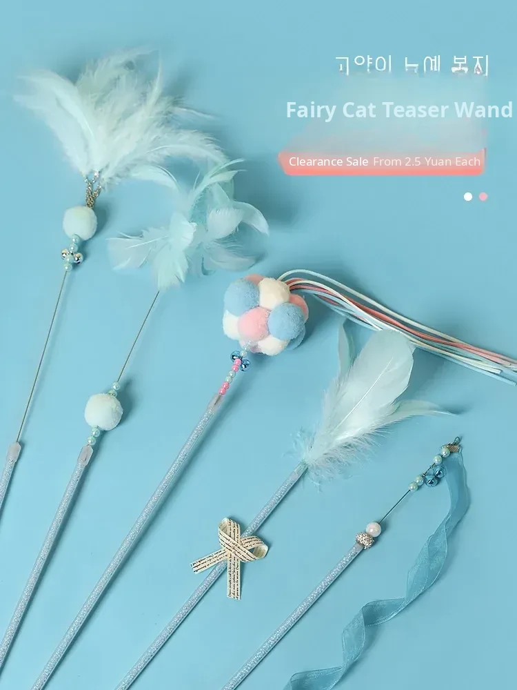 Interactive Cat Teaser Wand - Feather Long Rod for Kittens, Chew-Resistant, Energy-Burning Toy for Endless Fun and Dental Care