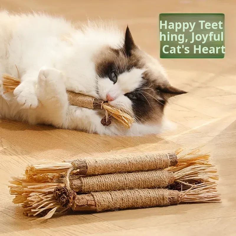 Premium Wooden Cat Teething Stick - Entertain Your Feline Friend with Durable Catnip Balls and Chew Toys - Essential Cat Care Product for Happy and Healthy Cats!