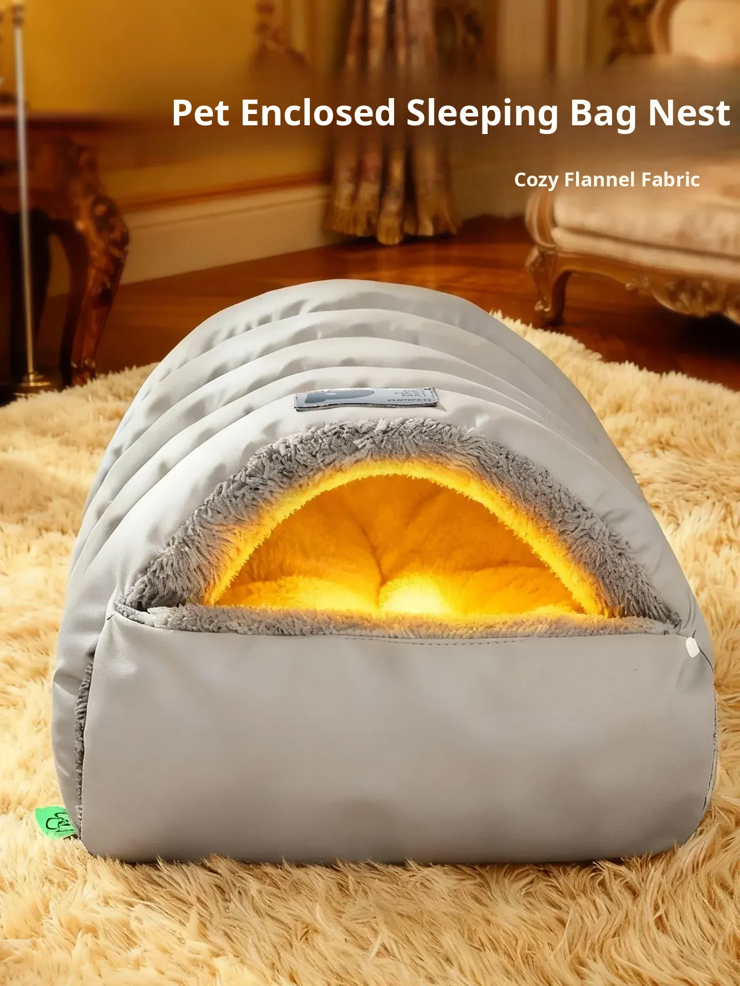Cozy Semi-Enclosed Cat Bed for Winter - Warm and Safe Sleeping Spot for Kittens and Cats, Ideal for Cold Weather, Perfect for Dogs Too!