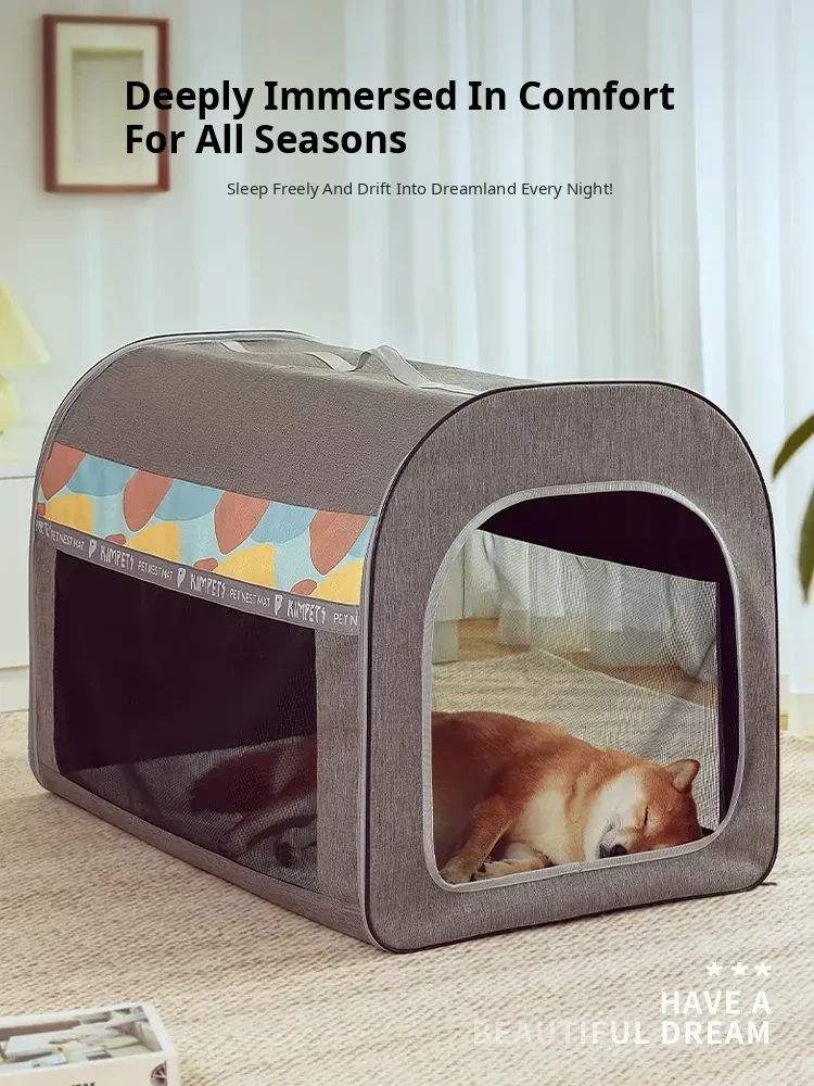 All-Season Washable Folding Dog Bed for Medium to Large Breeds - Cozy Pet House for Golden Retrievers and Cats to Sleep Comfortably