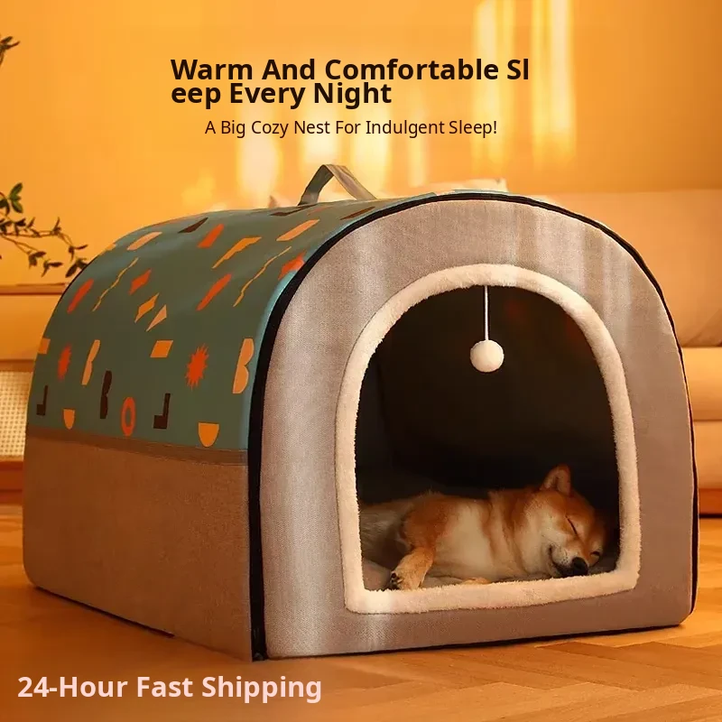 Large Dog Winter Bed - Cozy, Washable, and Enclosed Design for Ultimate Security - All-Season Pet Shelter for Dogs and Cats