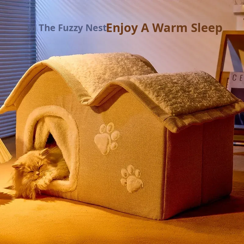 Cozy Winter Cat Bed - Thickened Semi-Enclosed Sleeping Nest for Kittens and Cats, Universal All-Season Dog and Cat Bed, Perfect for Keeping Your Furry Friends Warm This Winter!