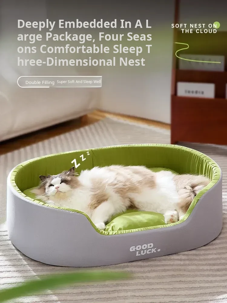 Cozy Winter Cat Bed - Thickened Warm Open Design for Cats, Providing Comfort and Security; Versatile Year-Round Dog and Cat Sleeping Nest for All Seasons