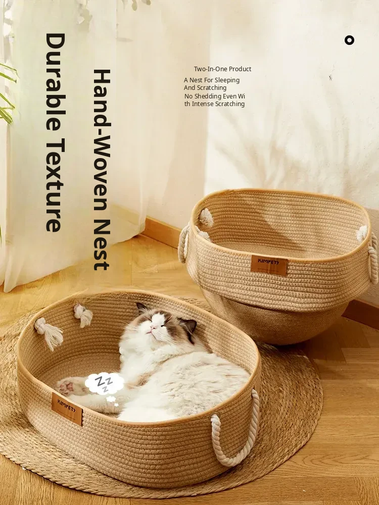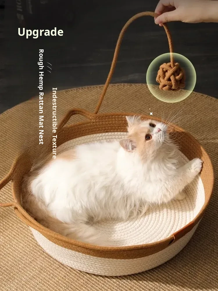 Summer Cat Bed - Versatile Woven Cotton-Linen Basket for All Seasons, Featuring a Cozy Sleeping Mat and Scratch Board for Your Feline Friend! Perfect Pet Supplies for Cats!