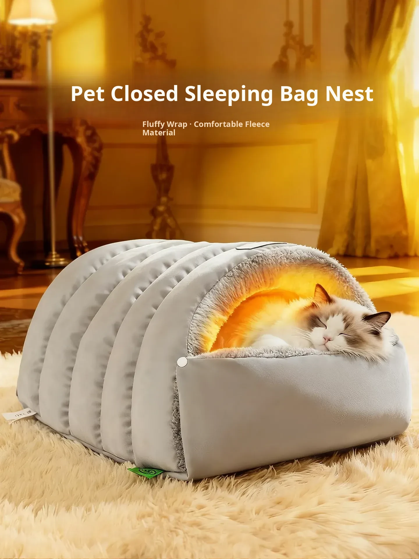 Cozy Enclosed Cat Sleeping Bag - Winter Warmth & Year-Round Comfort for Cats and Small Dogs - Perfect for Snug Sleep and Security!