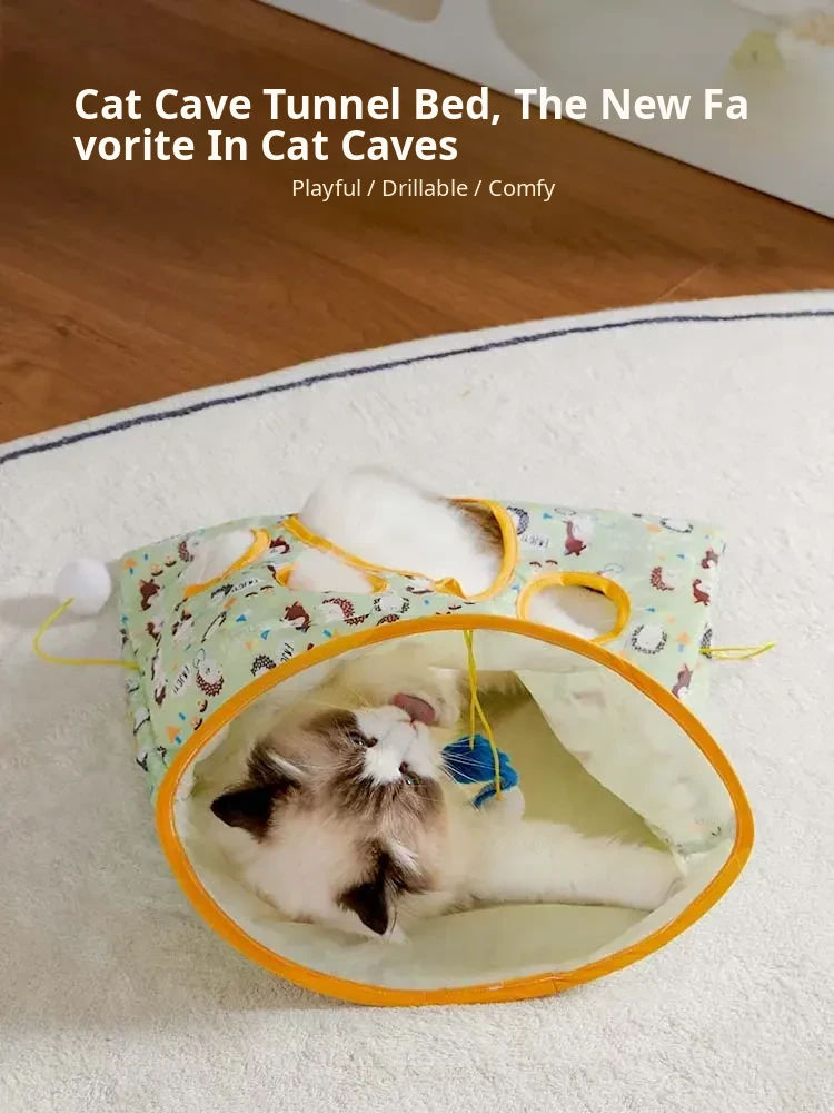 Exciting Cat Tunnel Toy - Interactive Pet Hideaway for Kittens and Cats, Perfect for Chewing, Teething, and Endless Fun with Wand Teaser! Durable, Engaging, and Ideal for Playtime!