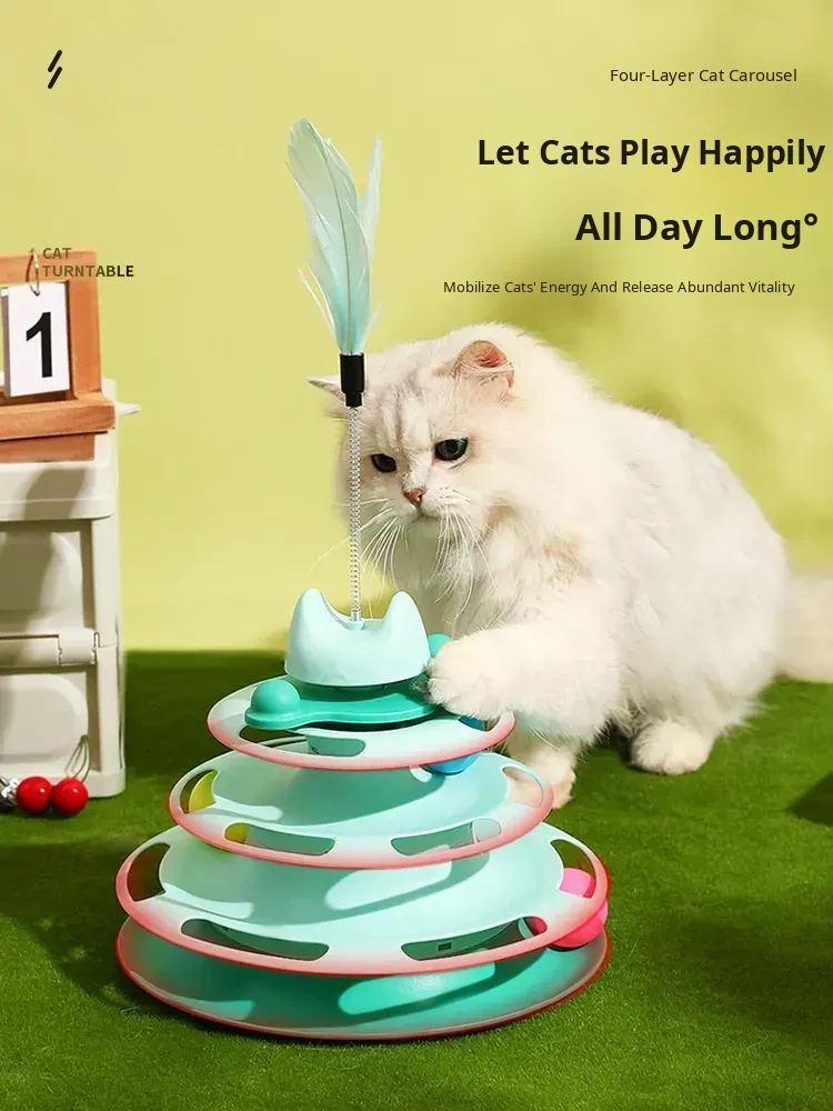 Interactive Feather Cat Teaser Wand with Bell - Rotating Toy for Kittens and Cats, Durable and Engaging Fun for Endless Playtime!