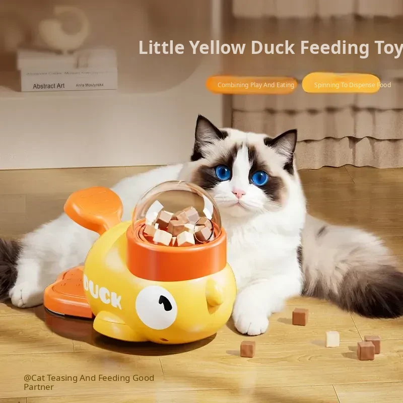Interactive Cat Toy Wand with Cute Yellow Duck, Treat Dispenser for Cats and Dogs - Engaging Puzzle Toy for Pet Fun and Healthy Snacking