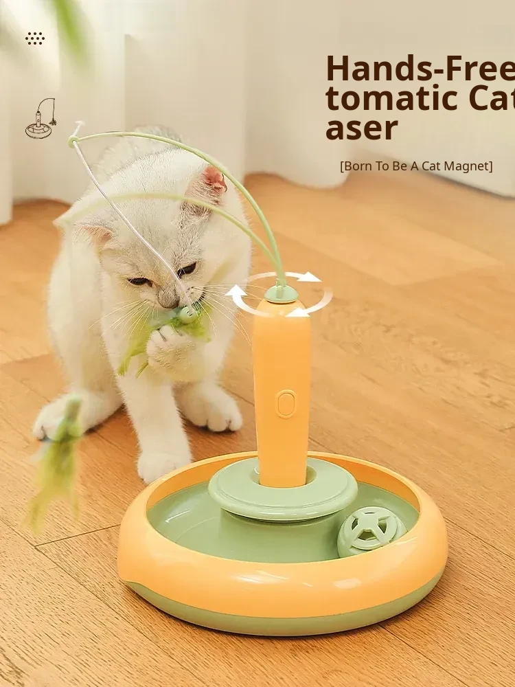 Interactive Cat Toy - Automatic Teaser Wand with Long Rod & Electric Rotating Disc for Endless Fun and Exercise for Your Feline Friend! Perfect for Keeping Cats Entertained and Active!